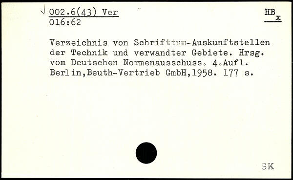 Verzeichnis von Schrifttum-Auskunftstellen der Technik und verwandter Gebiete. Hrsg, vom Deutschen Normenausschuss0