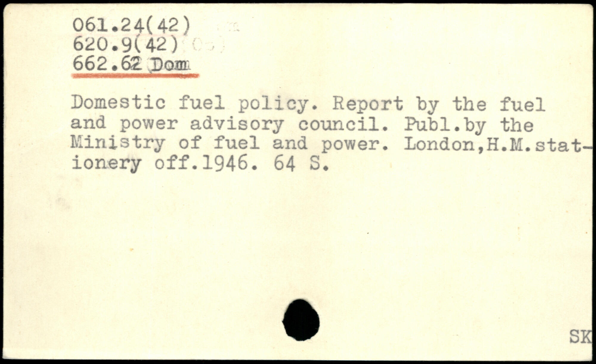Domestic fuel policy. Report by the fuel and power advisory council.