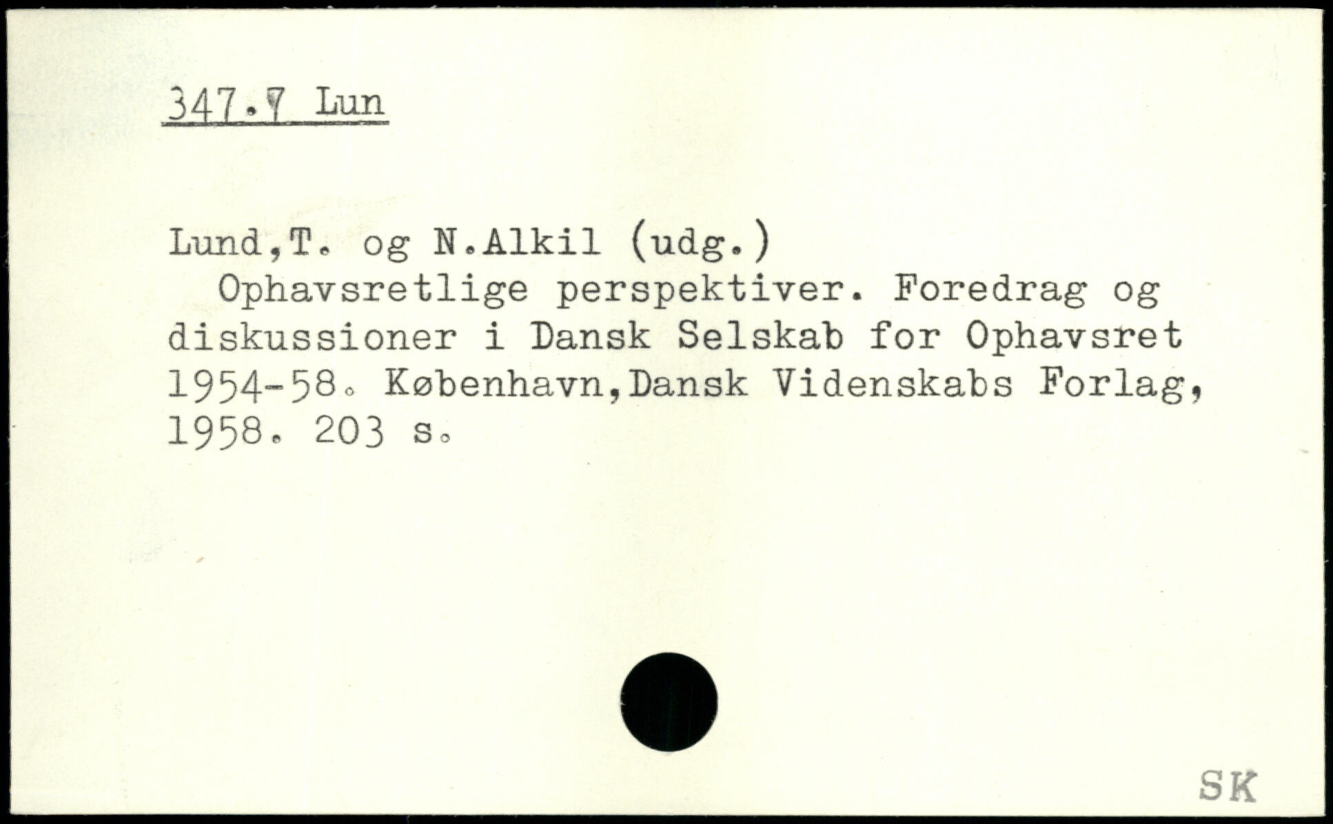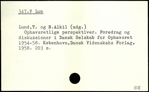 Ophavsretlige perspektiver. Foredrag og diskussioner i Dansk Selskab for Ophavsret 1954-58.