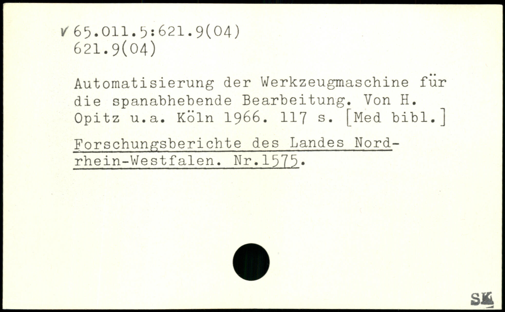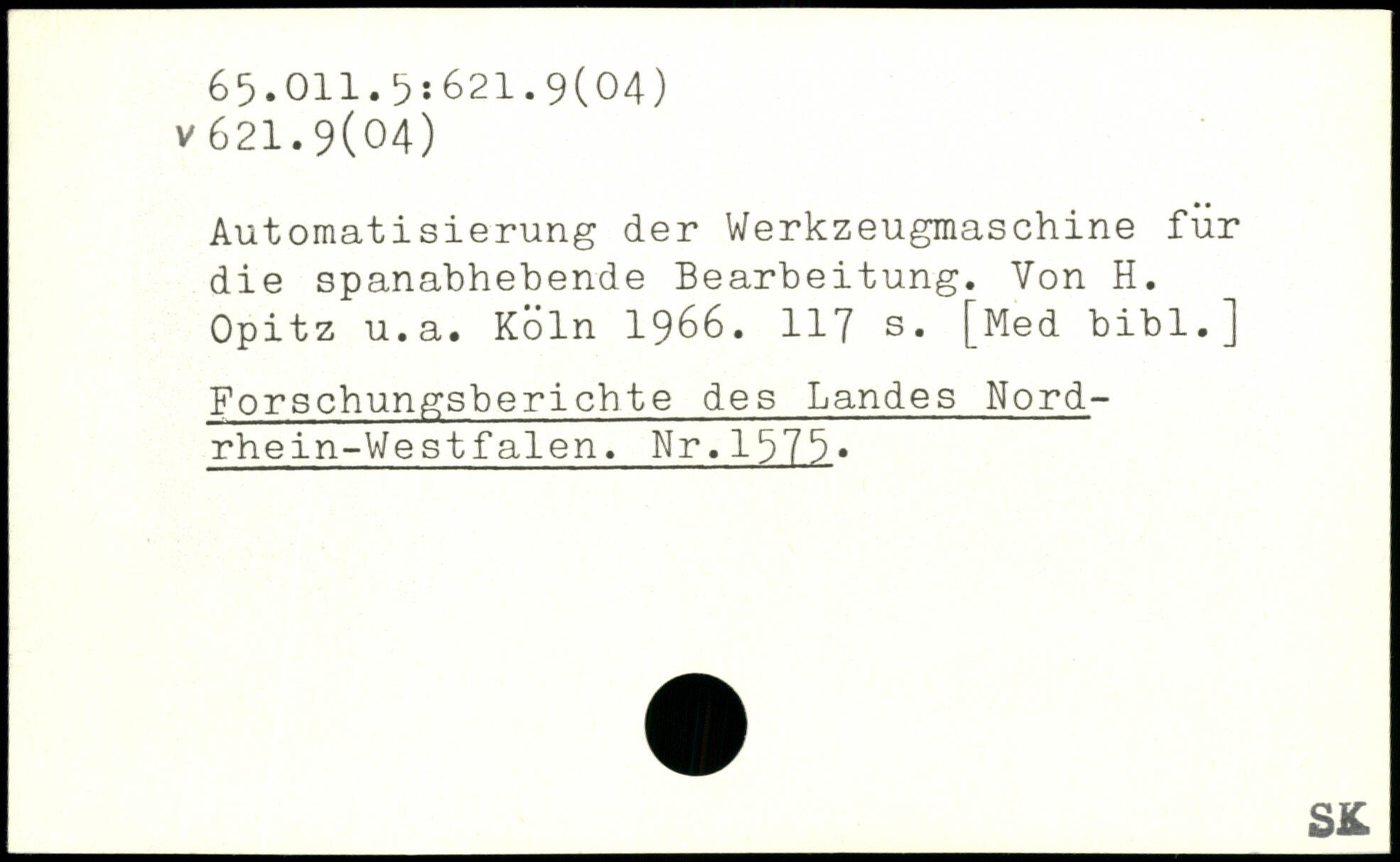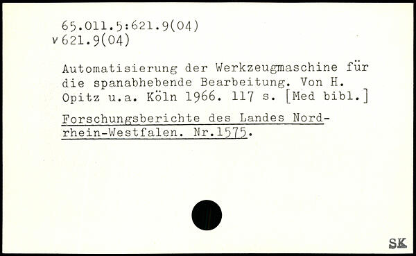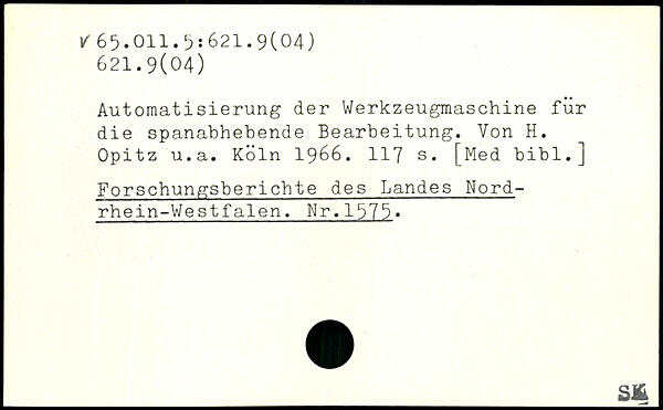 Automatisierung der Werkzeugmaschine für die spanabhebende Bearbeitung. Von H. Opitz u.a.
