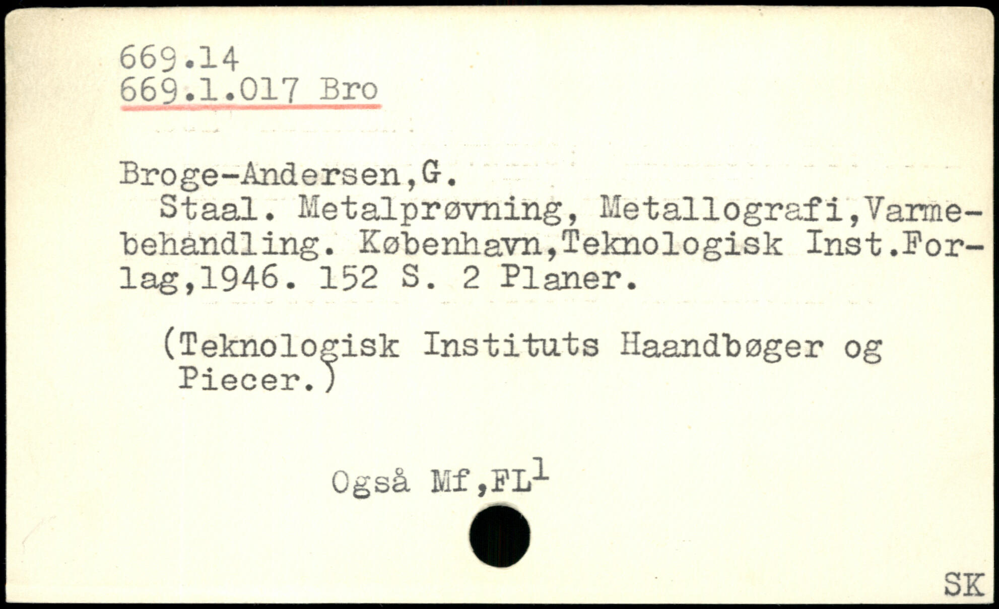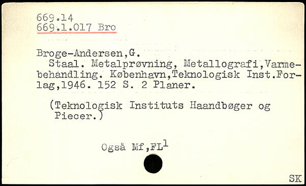 Staal. Metalprøvning, Metallografi,Varmebehandling. København,Teknologisk Inst.Borlag, 1946.