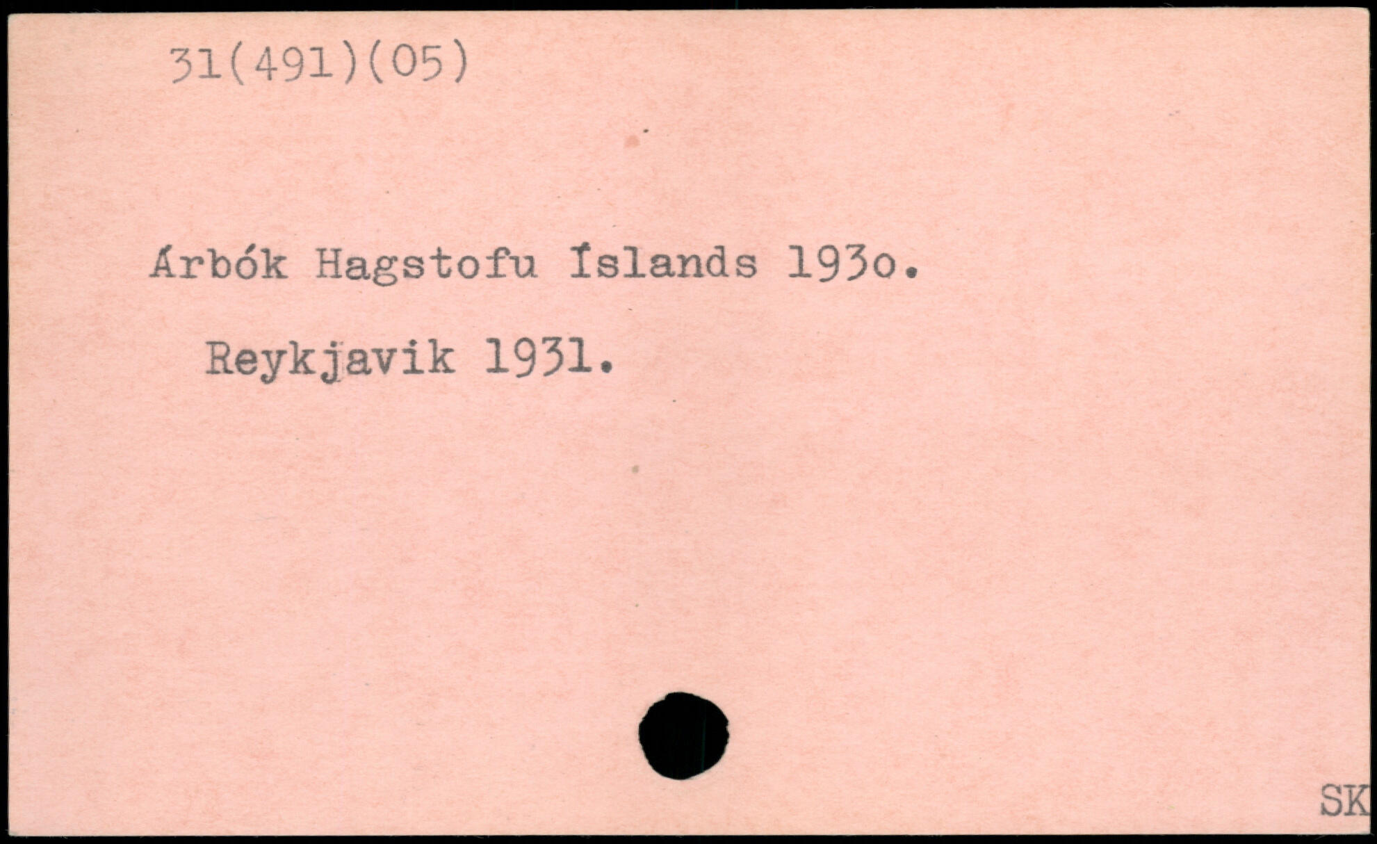 Ärbök Hagstofu Islands 193o. Reykjavik 1931.