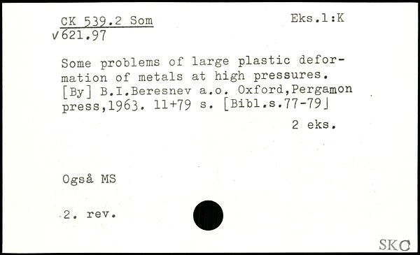 Some prollems of large plastic deformation of metals at high pressures. [By] B.I.Beresnev a.o.
