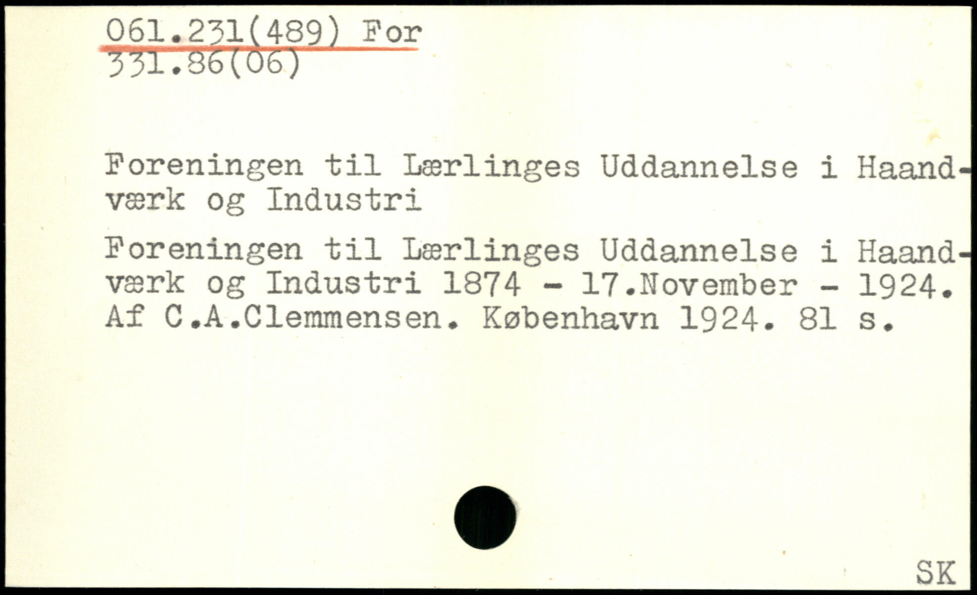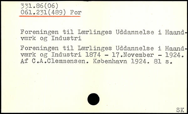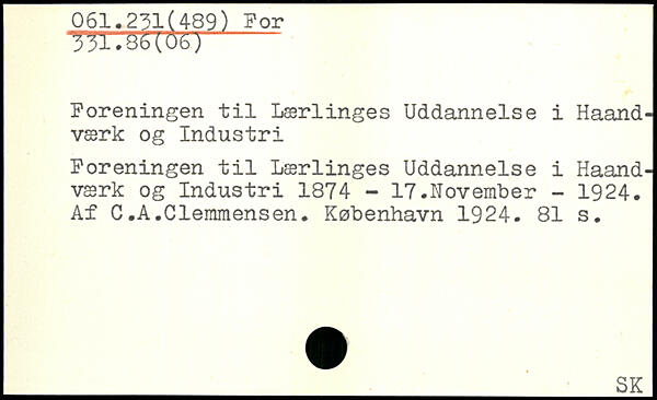 Foreningen til Lærlinges Uddannelse i Haand-værk og Industri Foreningen til Lærlinges Uddannelse i Haand-værk og Industri 1874 - 17.November - 1924. Af C.A.Clemmensen.