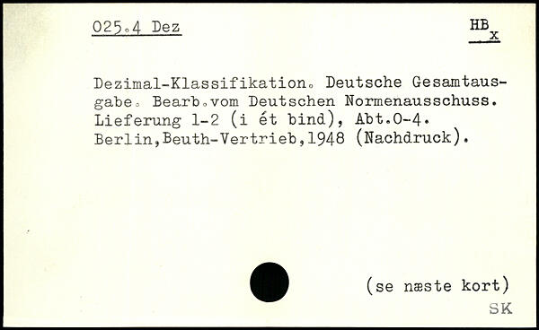 Dezimal-Klassifikatiorio Deutsche Gesamtausgabe o Bearbcvom Deutschen Normenausschuss. Lieferung 1-2 (i ét bind), Abt.0-4