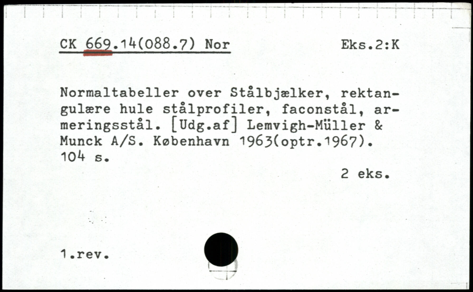 Normaltabeller over Stålbjælker, rektangulære hule stålprofiler, faconstål, armeringsstål. [Udg.af] Lemvigh-Muller & Munck A/S.