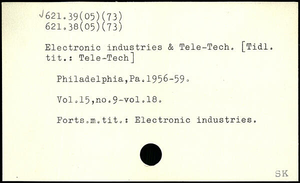 Electronic industries & Tele-Tech. [Tidl. tit.: Tele-Tech] Philadelphia,Pa.1956-59 , Yolo15}no,9-