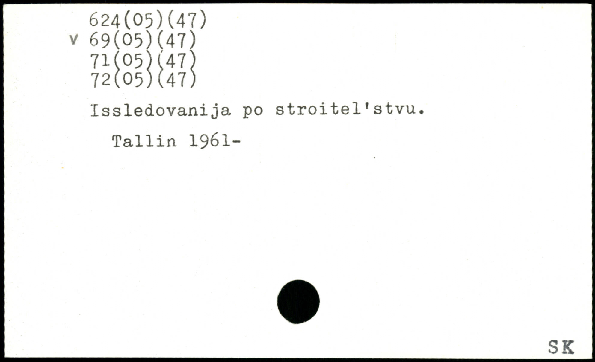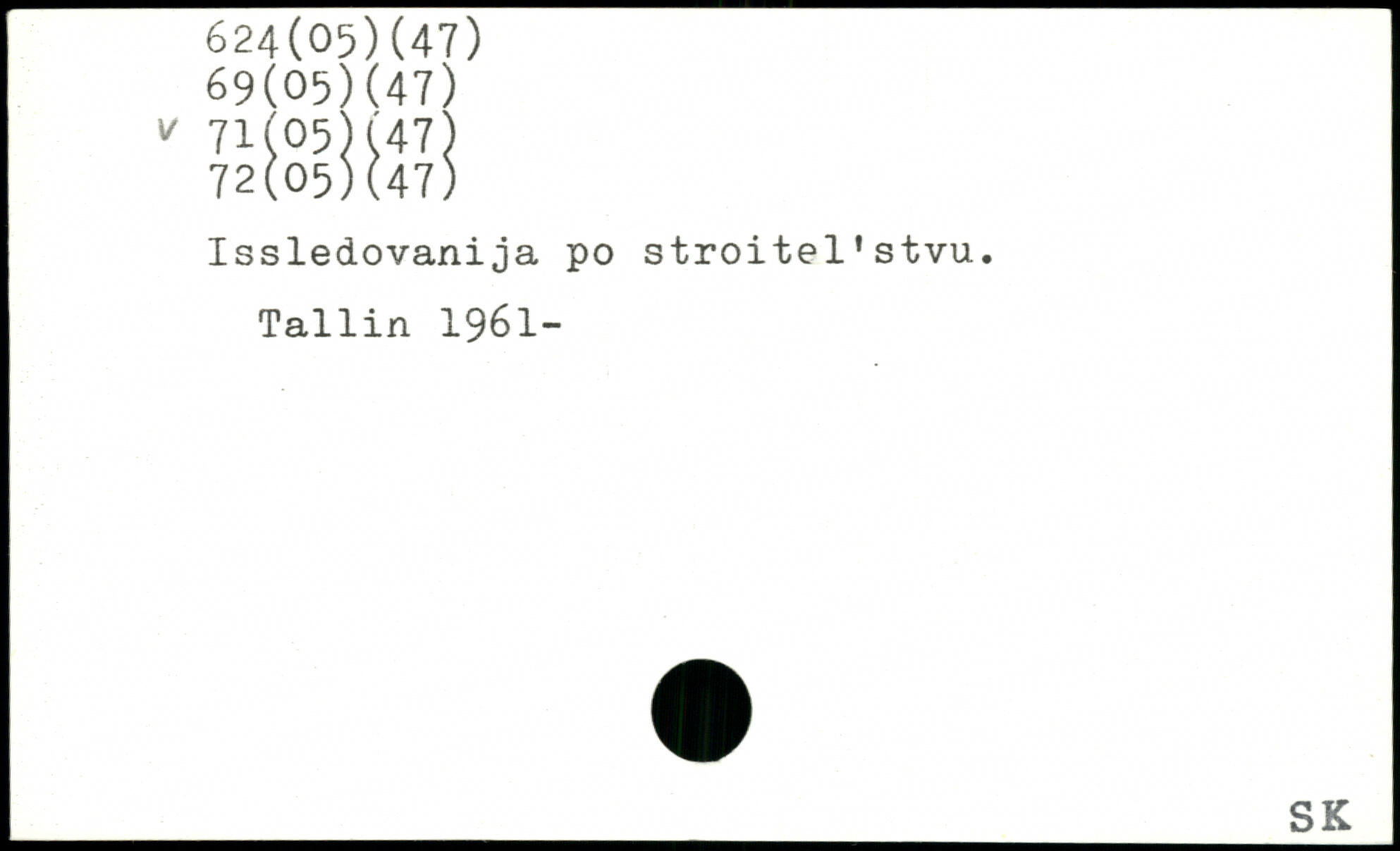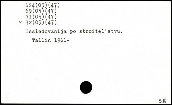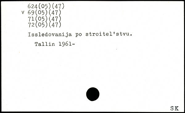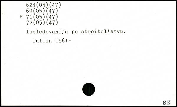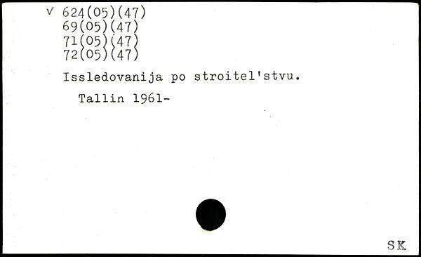 Issledovanija po stroitel'stvu. Tallin 1961-