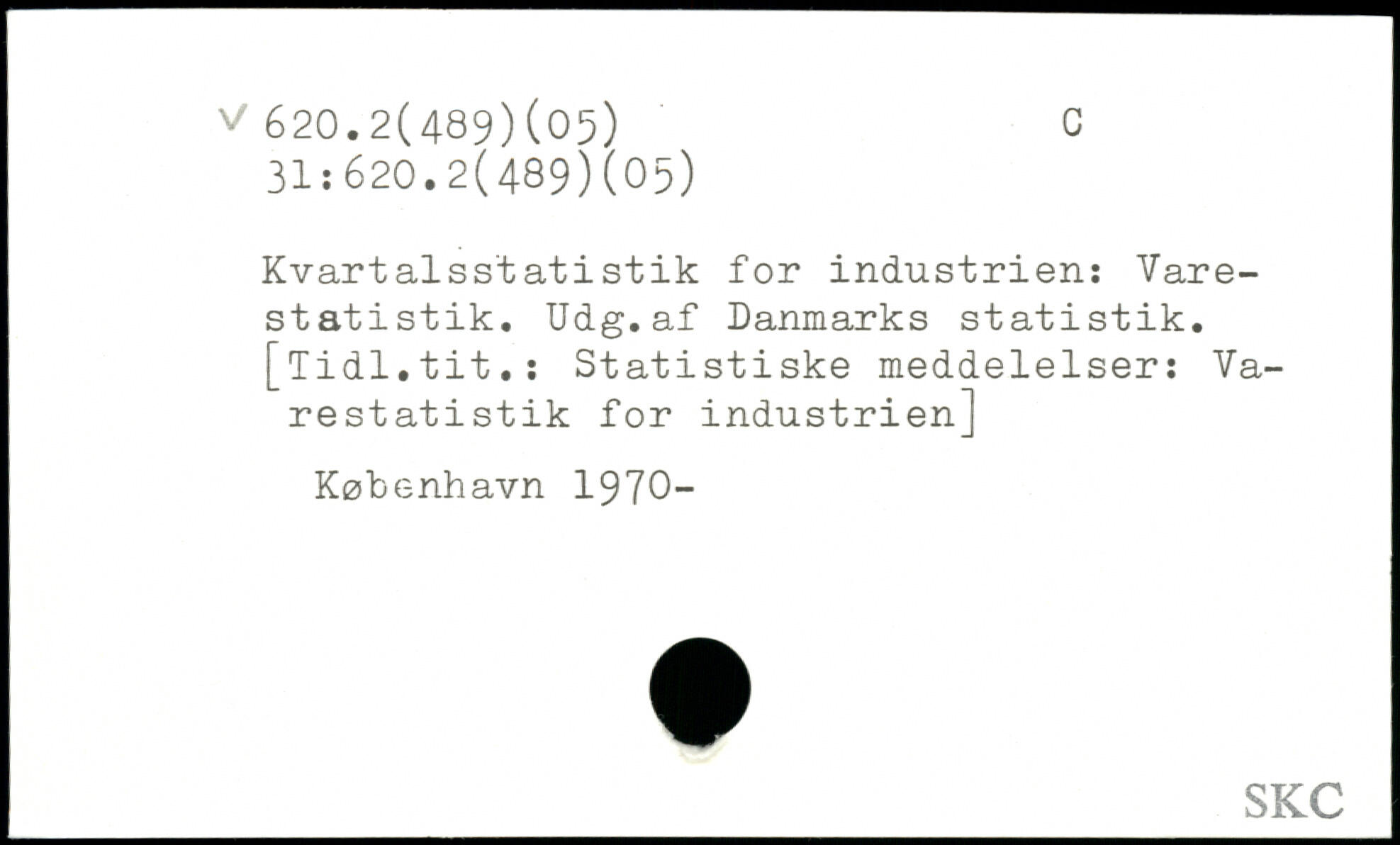 Kvartalsstatistik for industrien: Varestatistik. Udg.af Danmarks statistik. [Tidl.tit.: Statistiske meddelelser: Varestatistik for industrien]