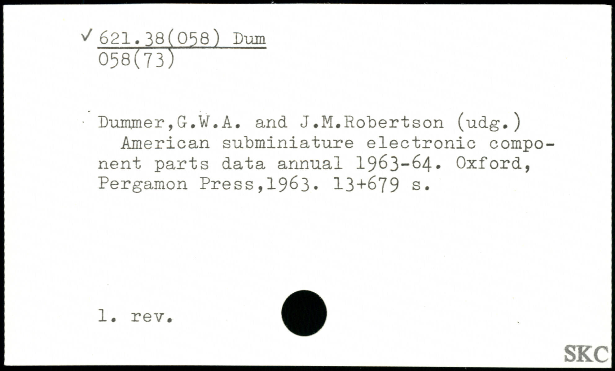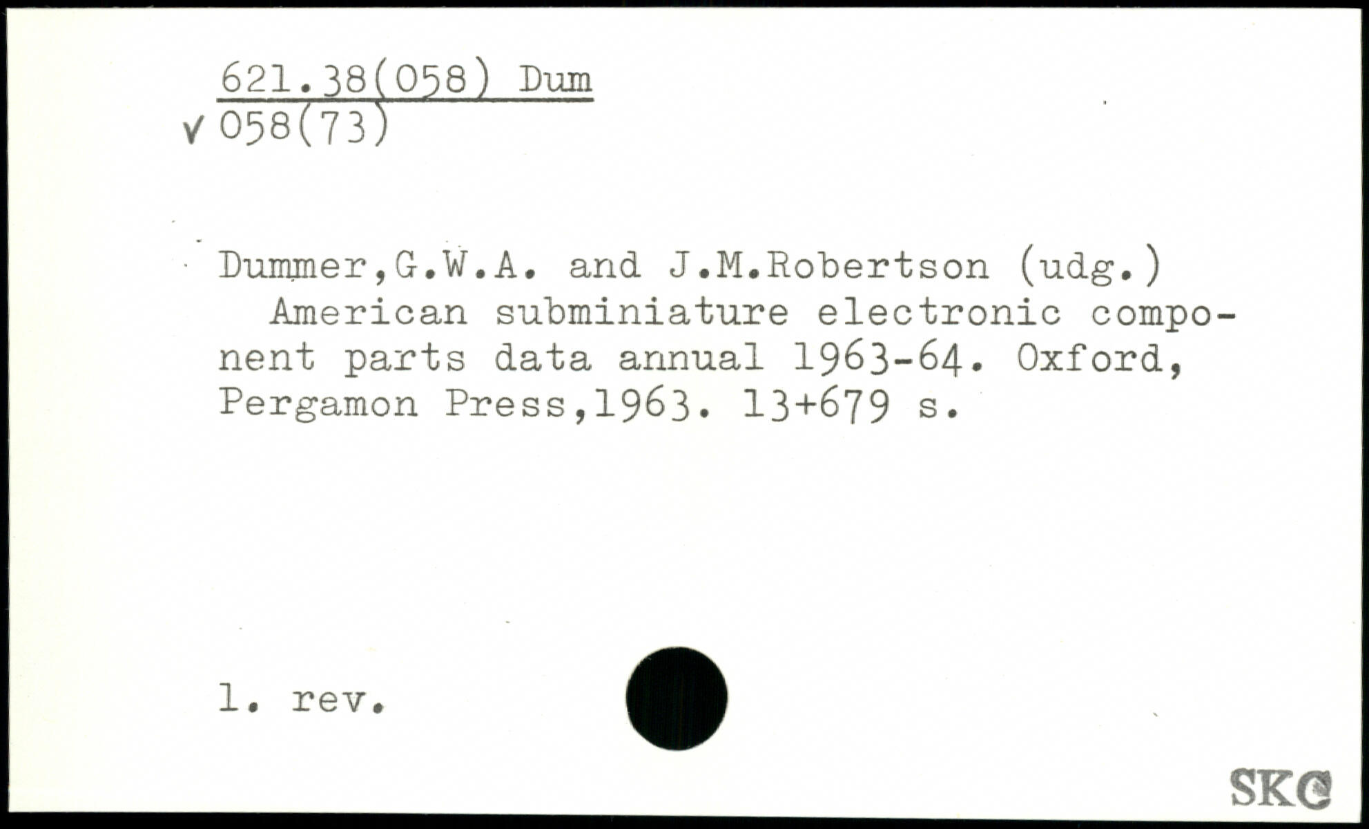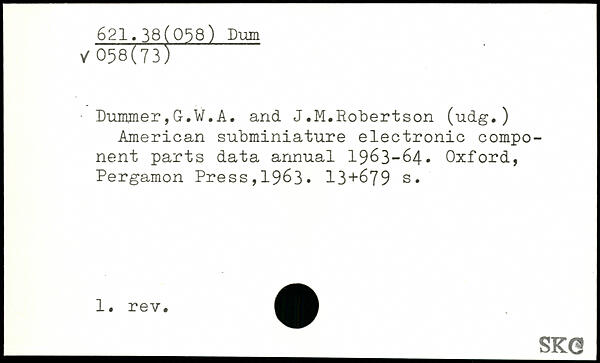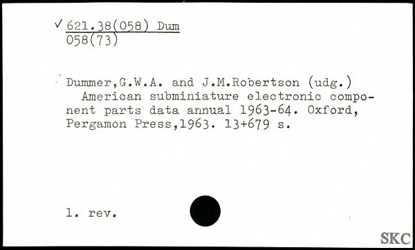 ■ Duimner,G.W.A. and J.M.Robertson (udg.) American subminiature electronic component parts data annual 1963-64.