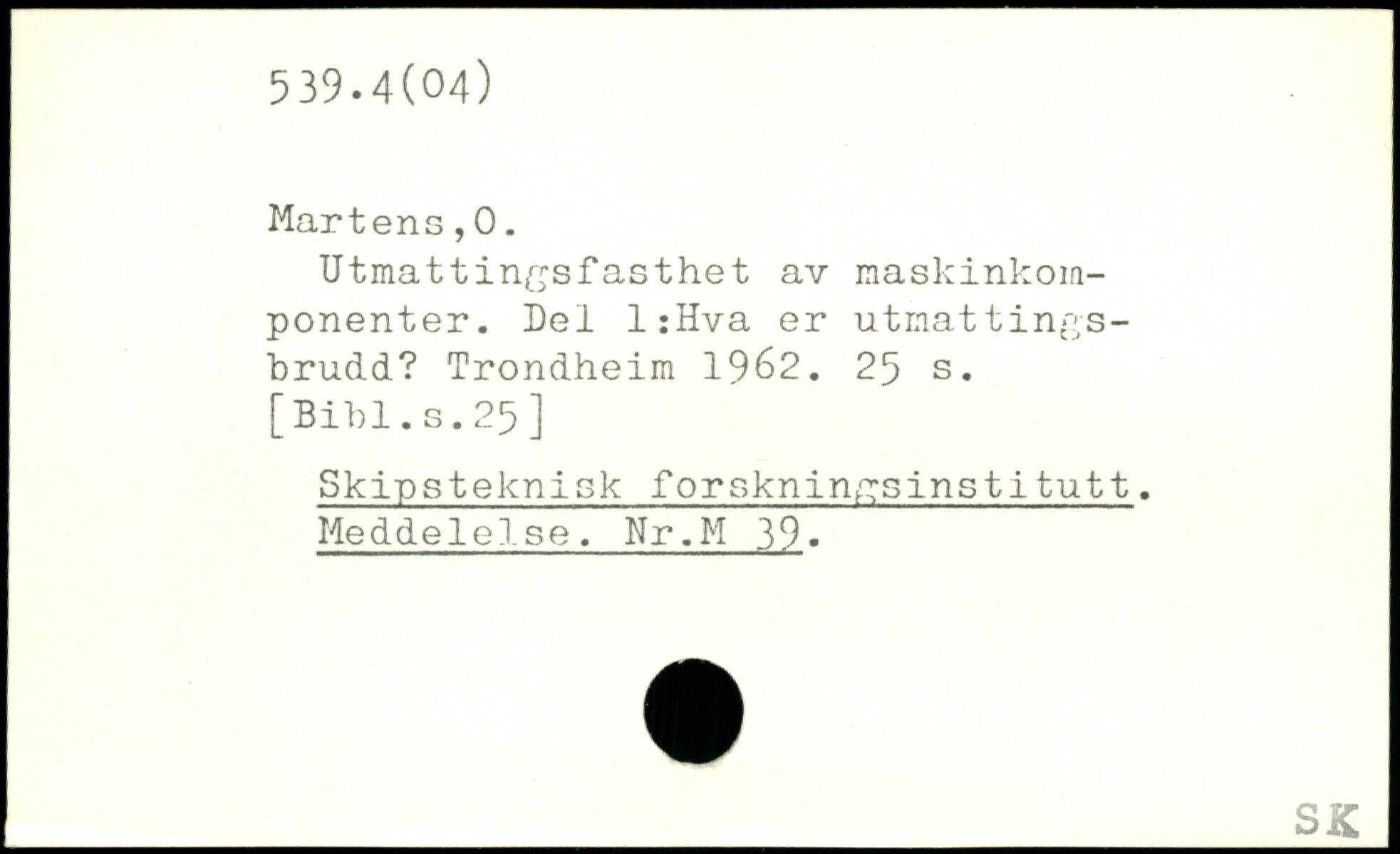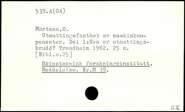 Utmattinftsfasthet av maskinkomponenter. Del l:Hva er utmattings-brudd?