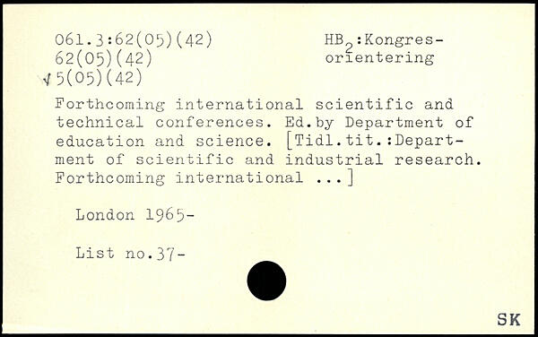 Forthcoming international scientific and technical conferences. Ed.by Department of education and science. [Tidl.tit.sDepart-ment of scientific and industrial research. Forthcoming international ...]