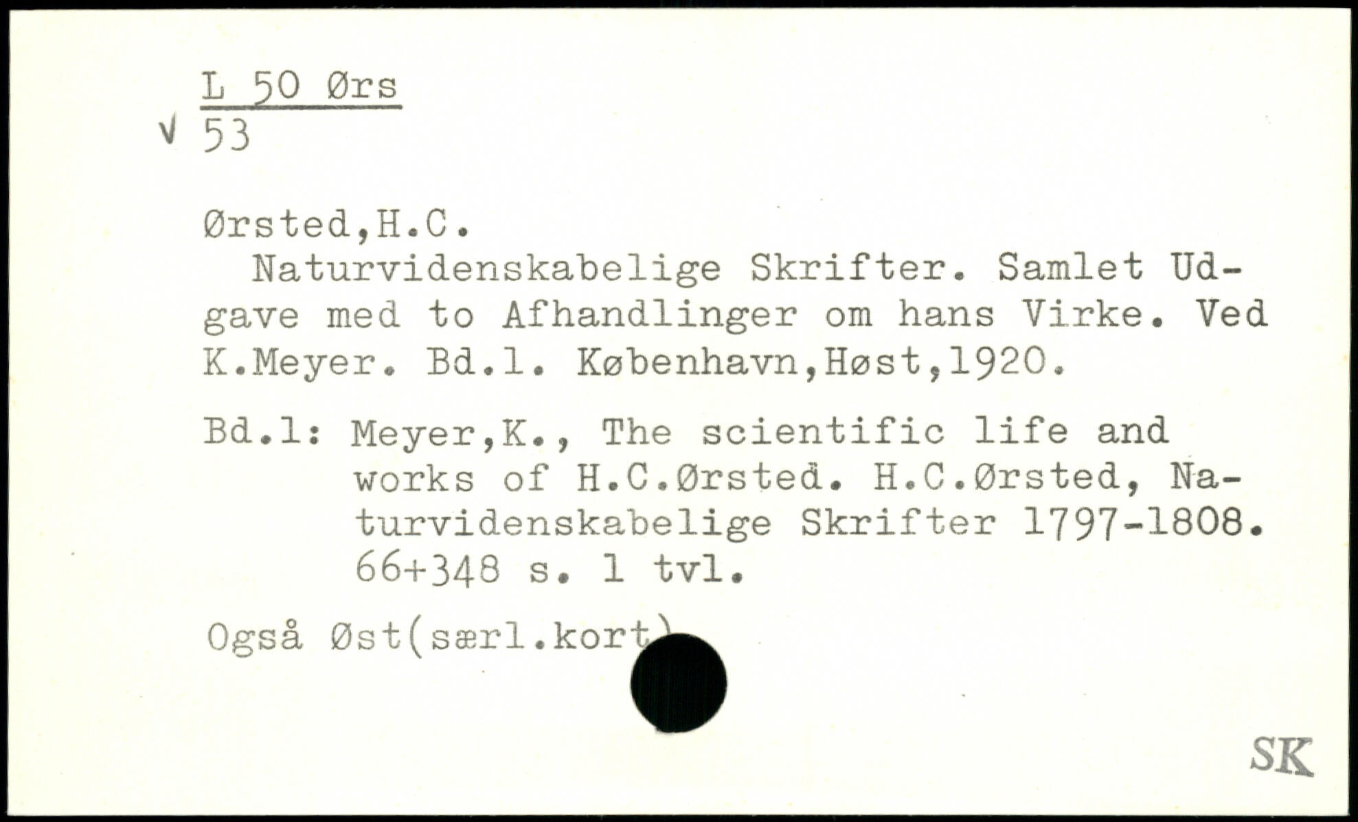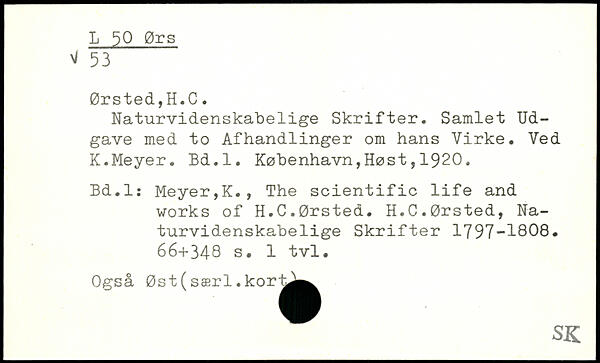 Naturvidenskabelige Skrifter. Samlet Udgave med to Afhandlinger om hans Virke. Ved K.Meyer. Bd.l.