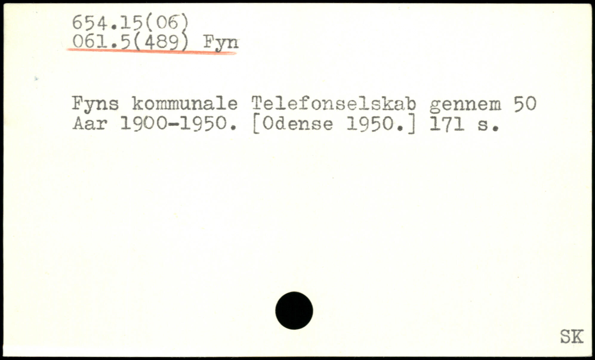 Fyns kommunale Telefonselskat) gennem 50 Aar 1900-1950. [Odense 1950.]