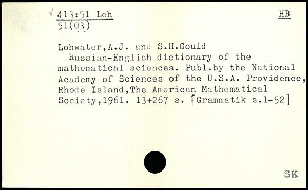 Lohwater,A.J. aru! S.H.Gould Russian-English dictionary of the mathematical sciences.