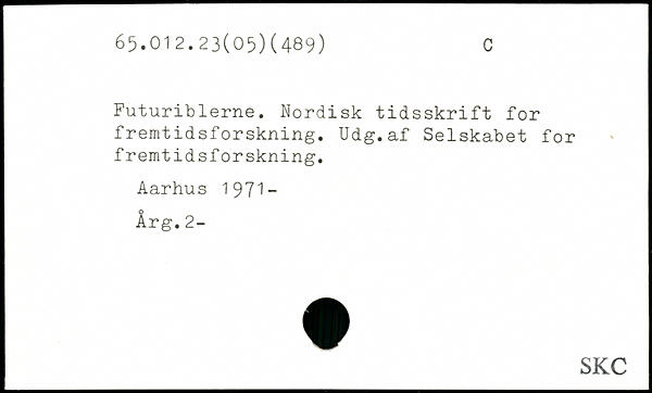 Futuriblerne. Nordisk tidsskrift for fremtidsforskning. Udg.af Selskabet for fremtidsforskning.
