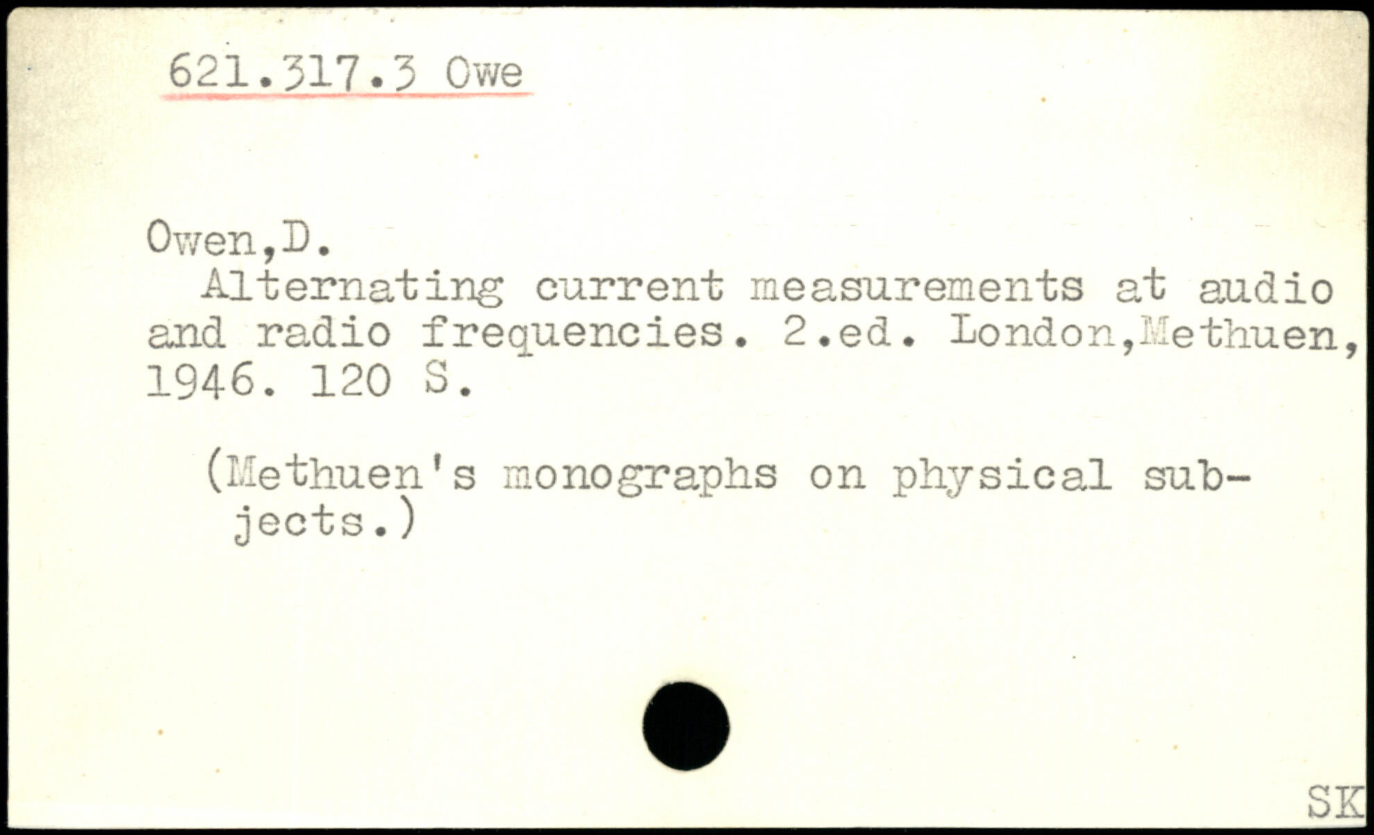 p I 621.317.3 Owe Owen,D. Alternating current measurements at audio and radio frequencies.