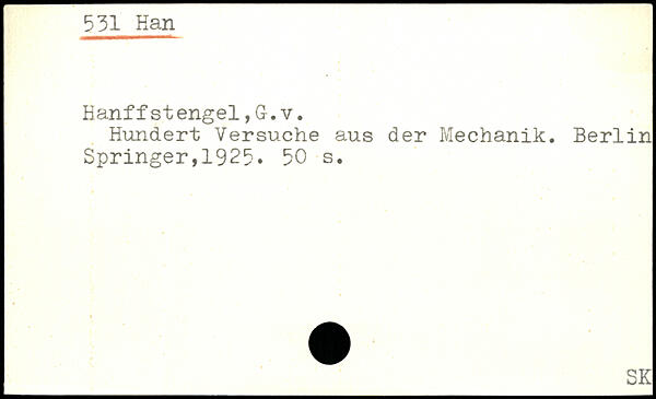 Hanf f stengel, G-. v. Hundert Versuche aus der Mechanik. Berlin Springer,1925.