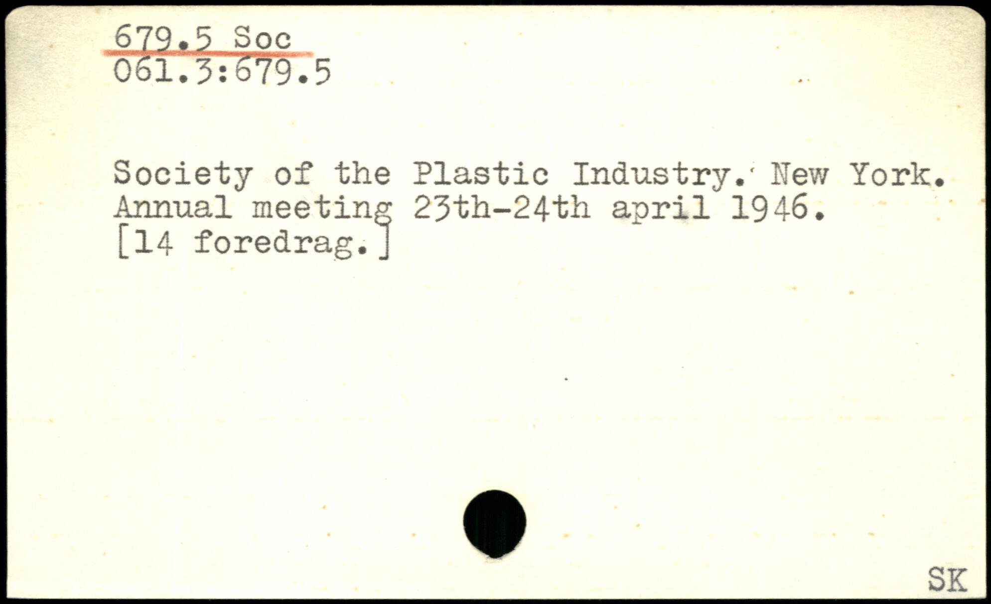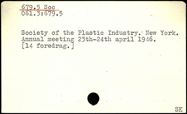 Society of the Plastic Industry.' Hew York. Annual meeting 23th-24th april 1946. [14 foredrag.j