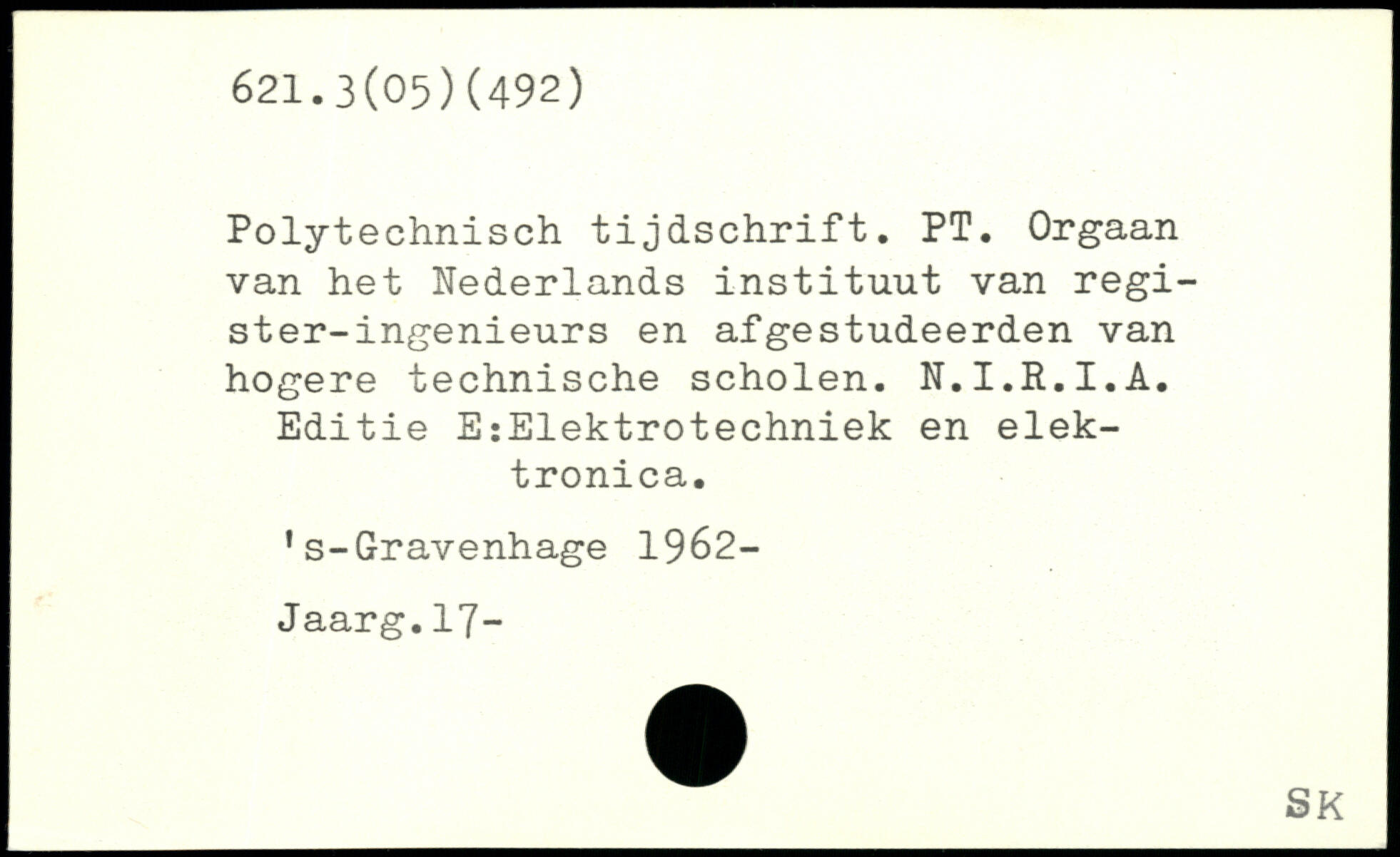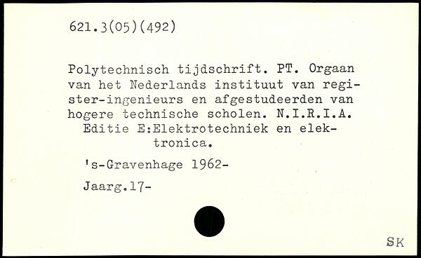 Polytechnisch tijdschrift. PT. Orgaan van het Nederlands instituut van regi-ster-ingenieurs en afgestudeerden van hogere technische scholen. N.I.R.I.A. Editie EîElektrotechniek en elek-tronica. 's-Gravenhage 1962-Jaarg.17-