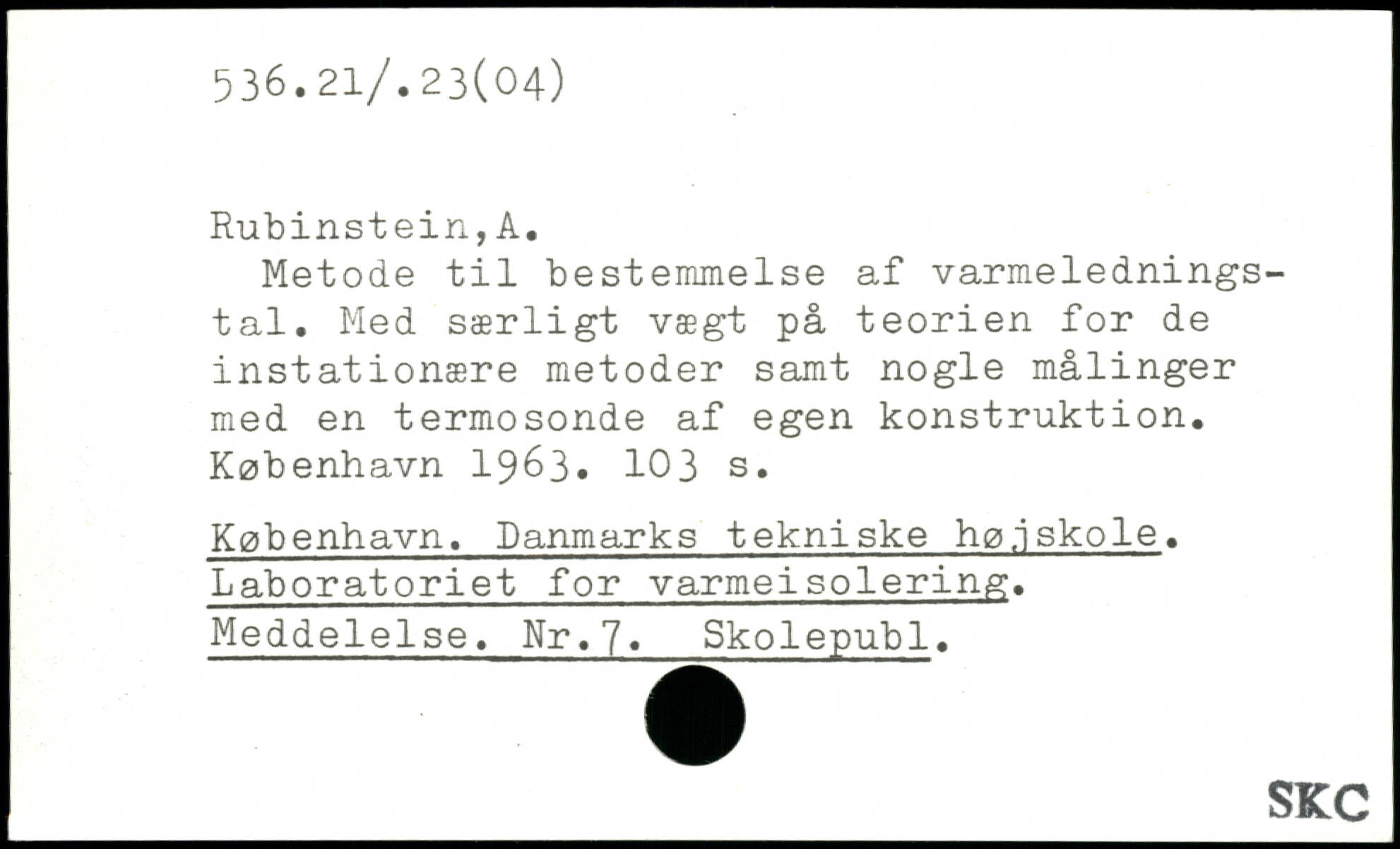 Metode til bestemmelse af varmelednings-tal. Med særligt vægt på teorien for de instationære metoder samt nogle målinger med en termosonde af egen konstruktion.