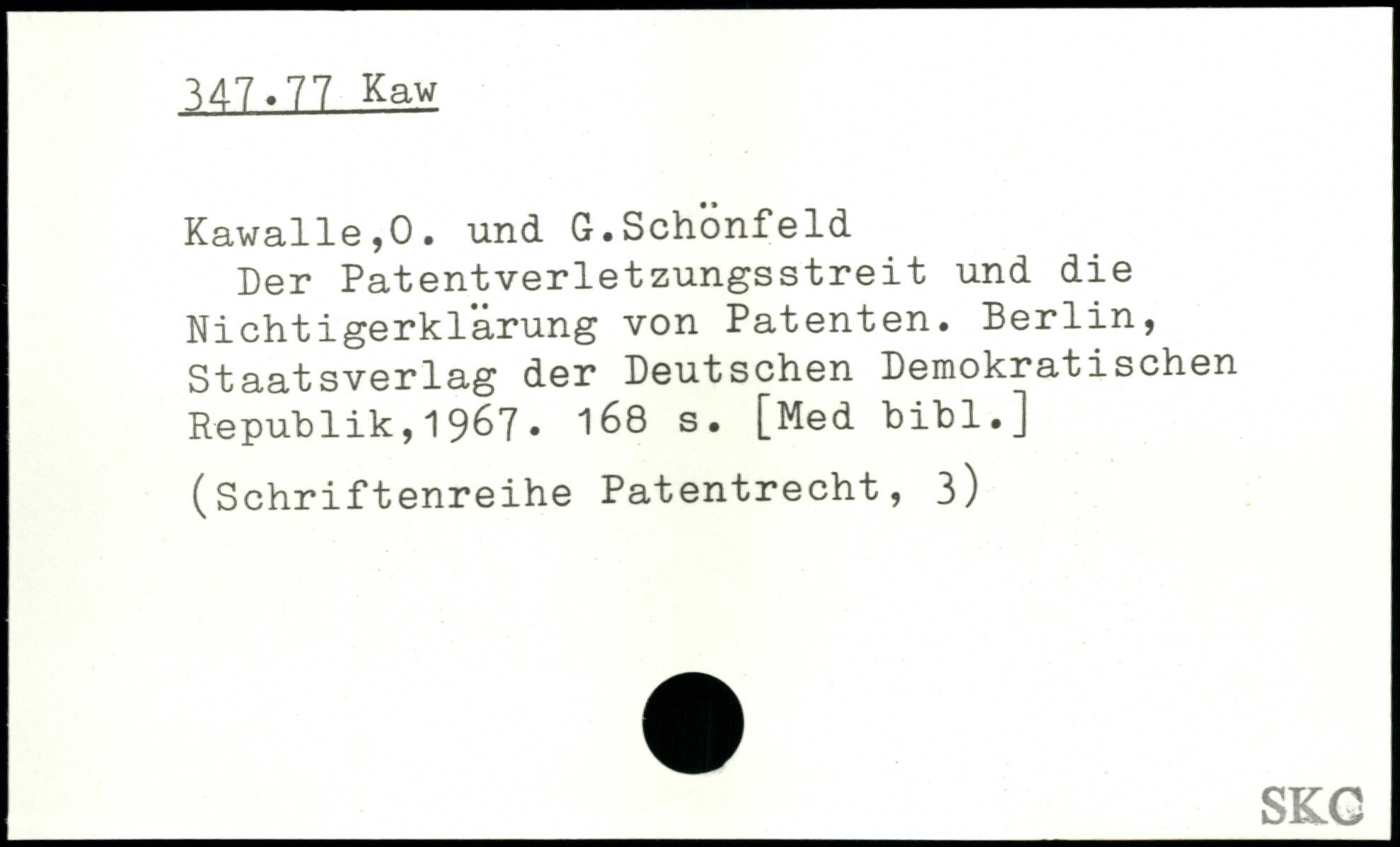 Der Patentverletzungsstreit und die Nichtigerklärung von Patenten. Berlin, Staatsverlag der Deutschen Demokratischen Republik,1967.