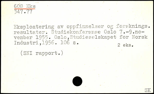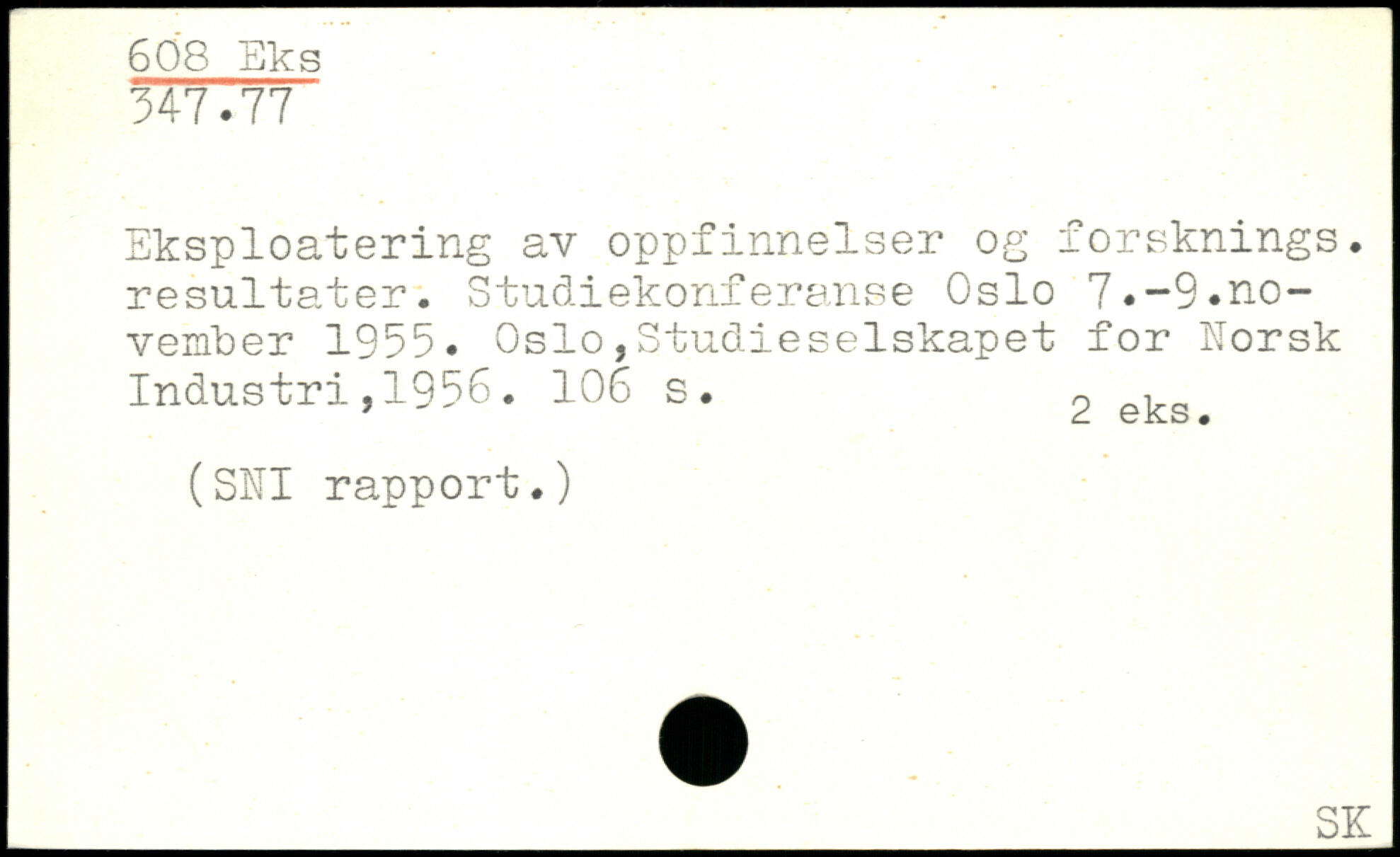 Eksploatering av oppfinnelser og forsknings, resultater. Studiekonferanse Oslo 7.-9.november 1955.