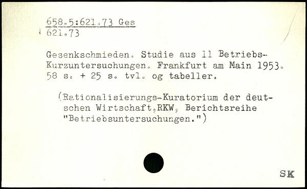 Gesenkschmieden, Studie ans 1.1 Betriebs“ Kurzuntersuchungeno