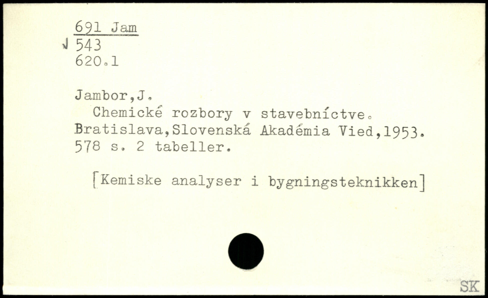 Chemicke rozbory v stavebnictve, Bratislava,Slovenskå Akadémia Vied,1953. 578 s, 2 tabeller.