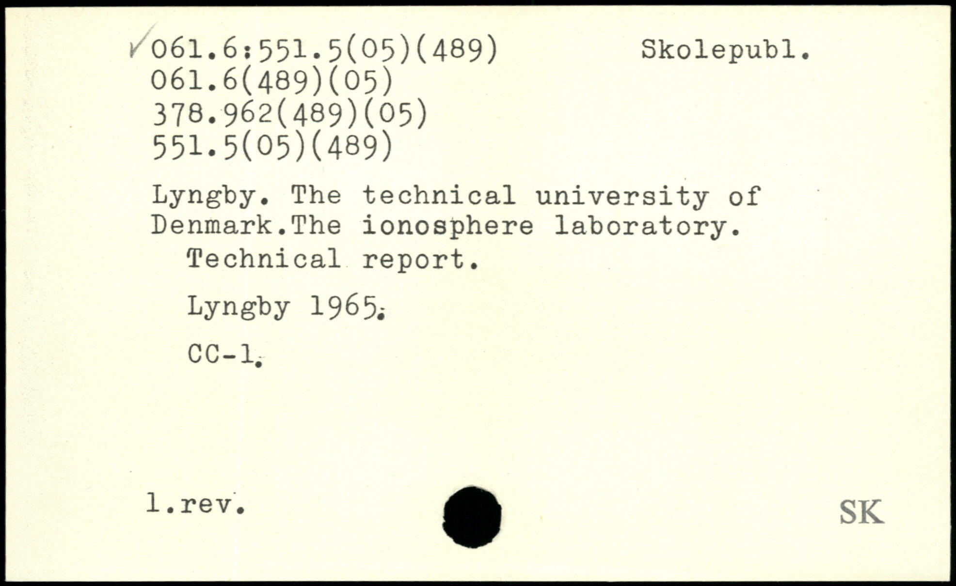 Lyngby. The technical university of Denmark.The ionosphere laboratory. Technical report. Lyngby 1965; CC-1. l.rev. £ SK