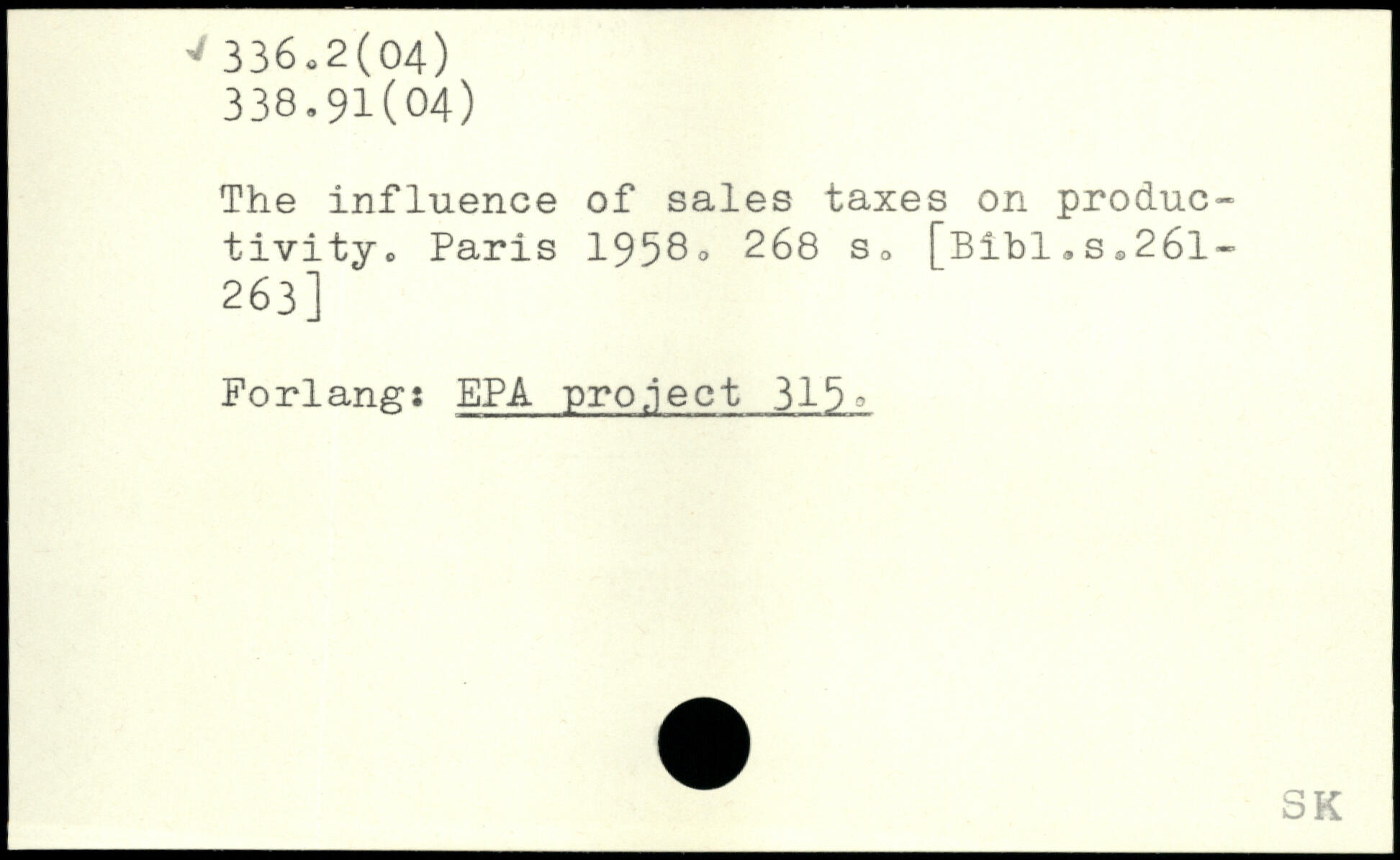 The influence of sales taxes on productivity.