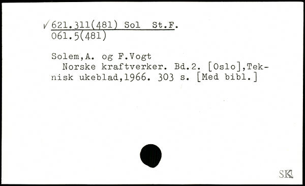 Norske kraftverker. Bi.2. [Oslo],Teknisk ukeblad,1966.