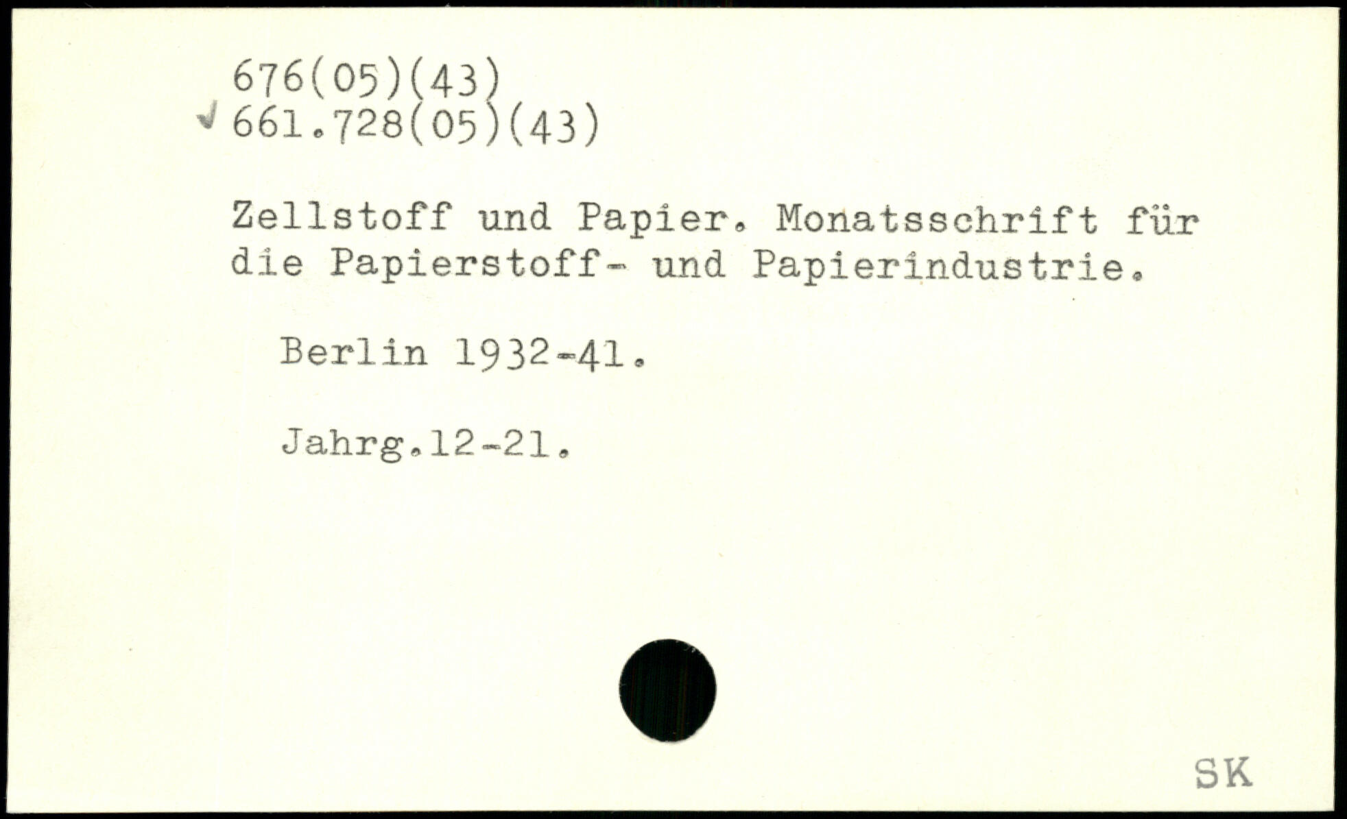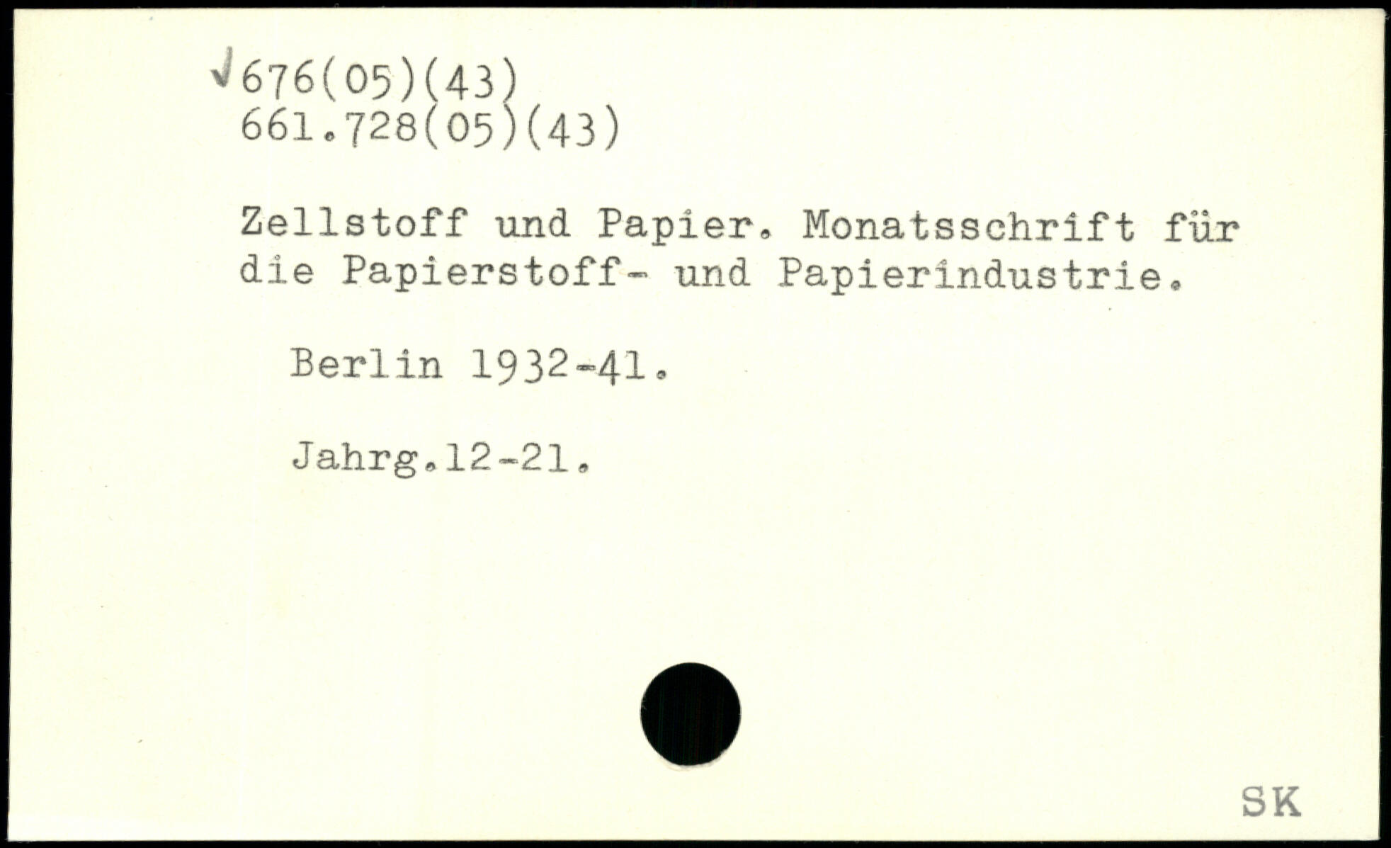Zellstoff und. Papier, Monatsschrift für die Papierstoff- und Papierindustrie