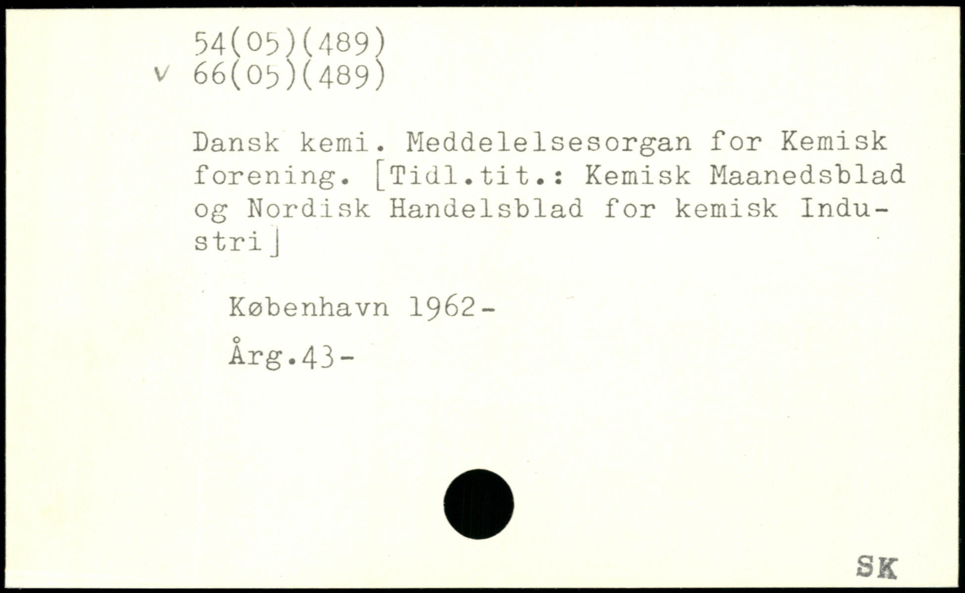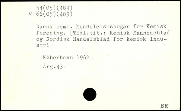 Dansk kemi. Meddelelsesorgan for Kemisk forening. [Tidl.tit.: Kemisk Maanedsblad og Nordisk Handelsblad for kemisk Industri J