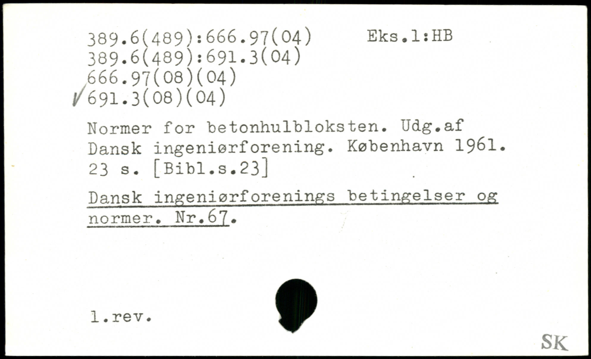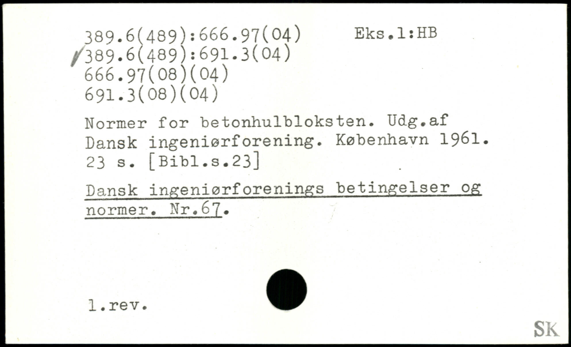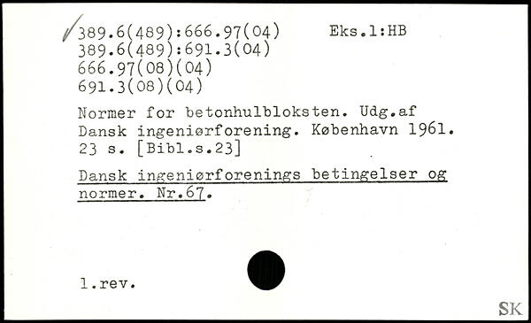 Normer for betonhulbloksten. Udg.af Dansk ingeniørforening.