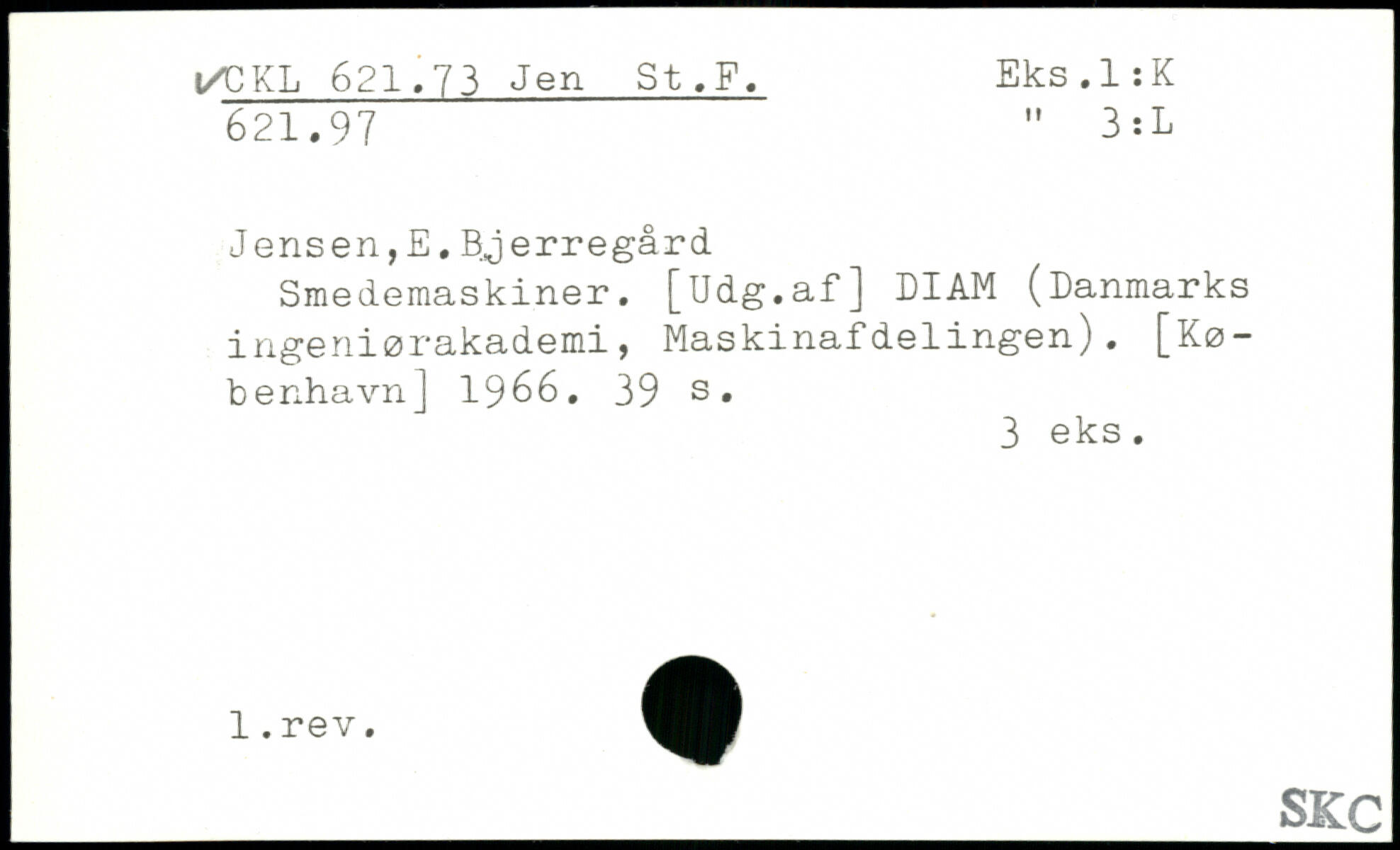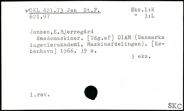 Jensen,E.Bjerregård Smedemaskiner. [Udg.af] DIAM (Danmarks ingeniørakademi, Maskinafdelingen).