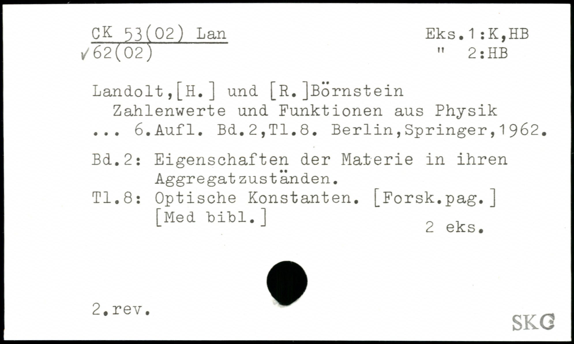 Landolt,[H.] und [R.]BÖrnstein Zahlenwerte und Funktionen aus Physik ...