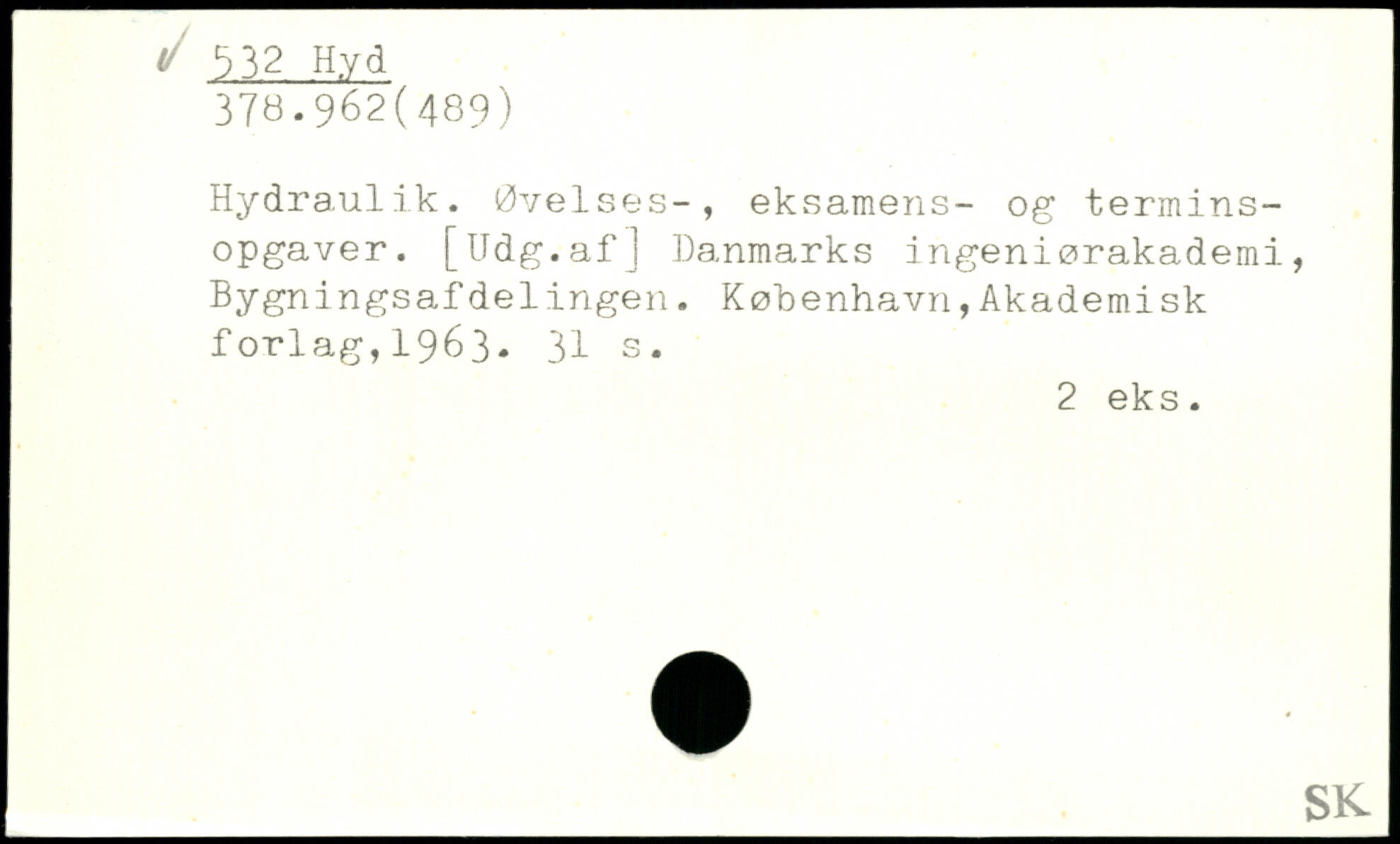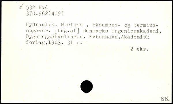 Hydraulik. Øvelses-, eksamens- og terminsopgaver. [Udg.af] Danmarks ingeniørakademi, Bygningsafdelingen.