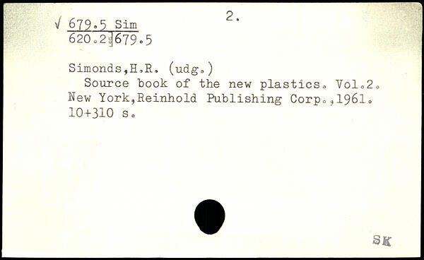 Simonds,H,R. (udg,) Source took of the new plastics, Yo1020