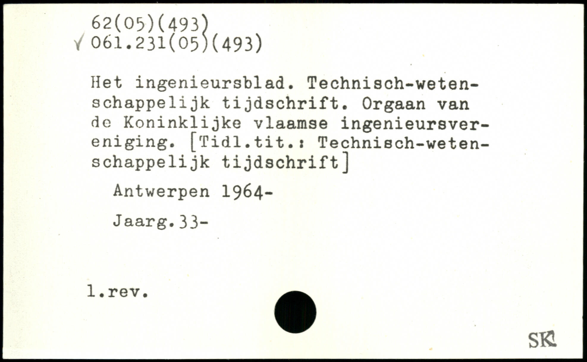 Het ingenieursblad. Technisch-weten-schappelijk tijdschrift. Orgaan van de Koninklijke vlaamse ingenieursver-eniging. [Tidl.tit.: Technisch-weten-schappelijk tijdschrift] Antwerpen 1964- Jaarg.33- l.rev. ^ sa
