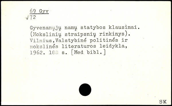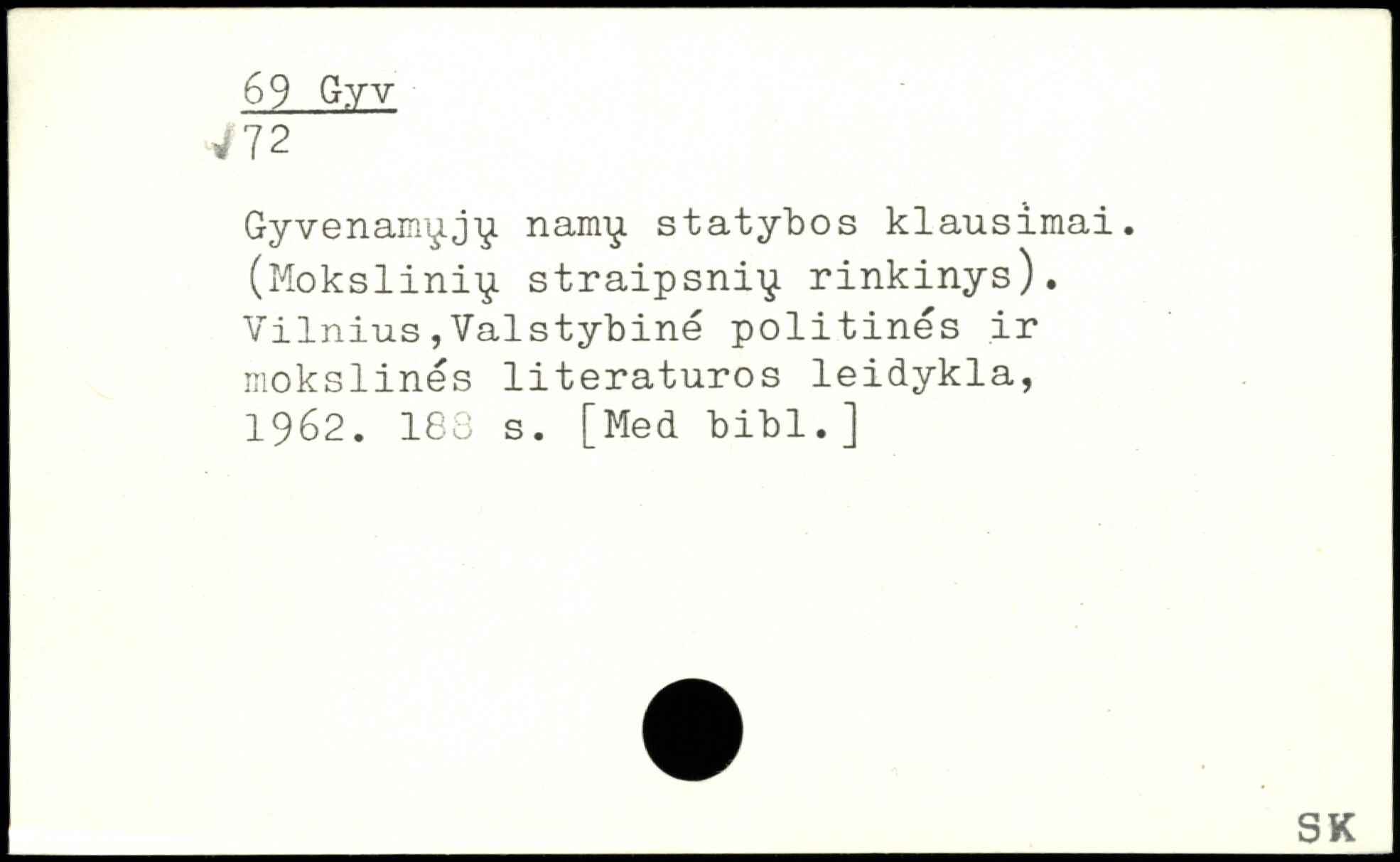 Gyvenamy.j'y. nanry. statybos klausimai. (Mokslini^ straipsni^ rinkinys). Vilnius,Valstybine politines ir niokslines literaturos leidykla, 1962.