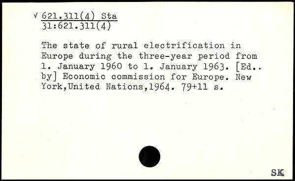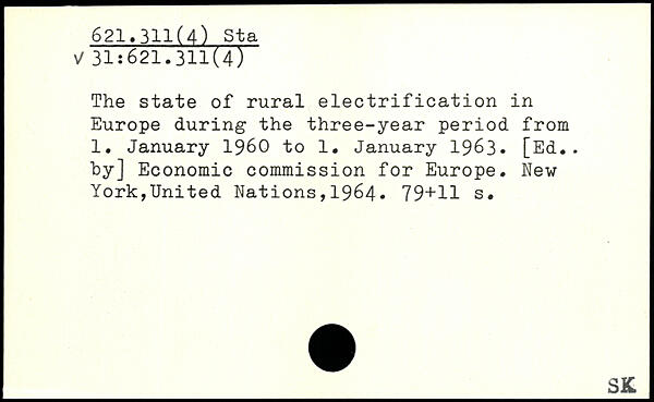 The state of rural electrification in Europe during the three-year period from 1. January 1960 to 1. January 1963. [Ed., hy] Economic commission for Europe.
