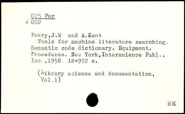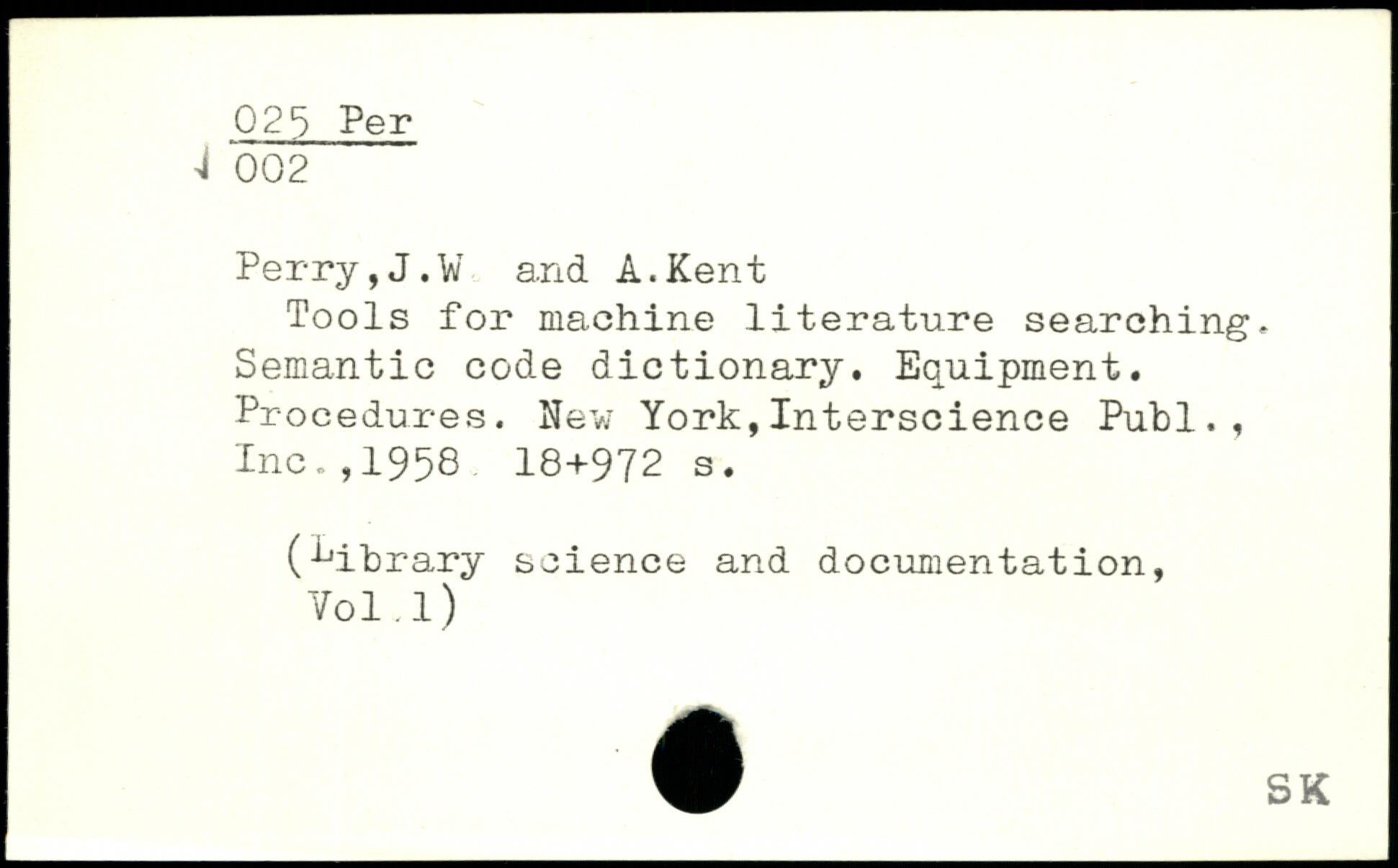 Tools for machine literature searching. Semantic code dictionary. Equipment. Procedures.