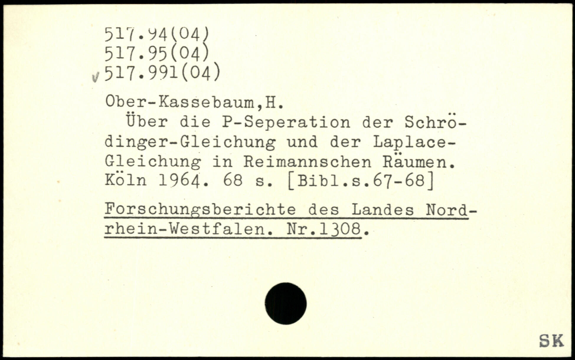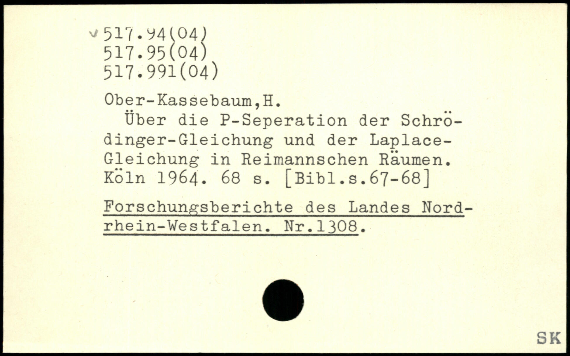 Über die P-Seperation der Schrödinger-Gleichung und der Laplace-Gleichung in Reimannschen Räumen.