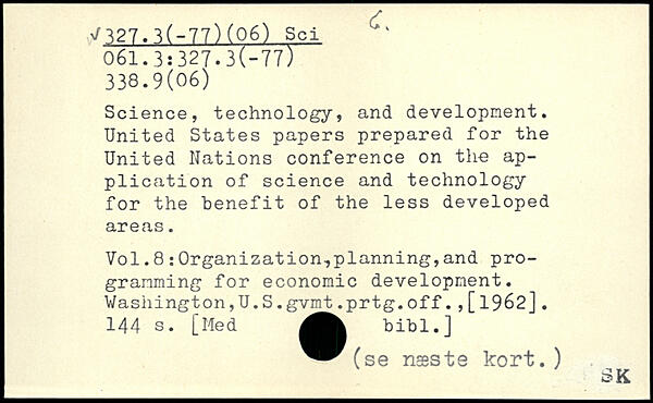 Science, technology, and development. United States papers prepared for the United Nations conference on the application of science and technology for the benefit of the less developed areas.