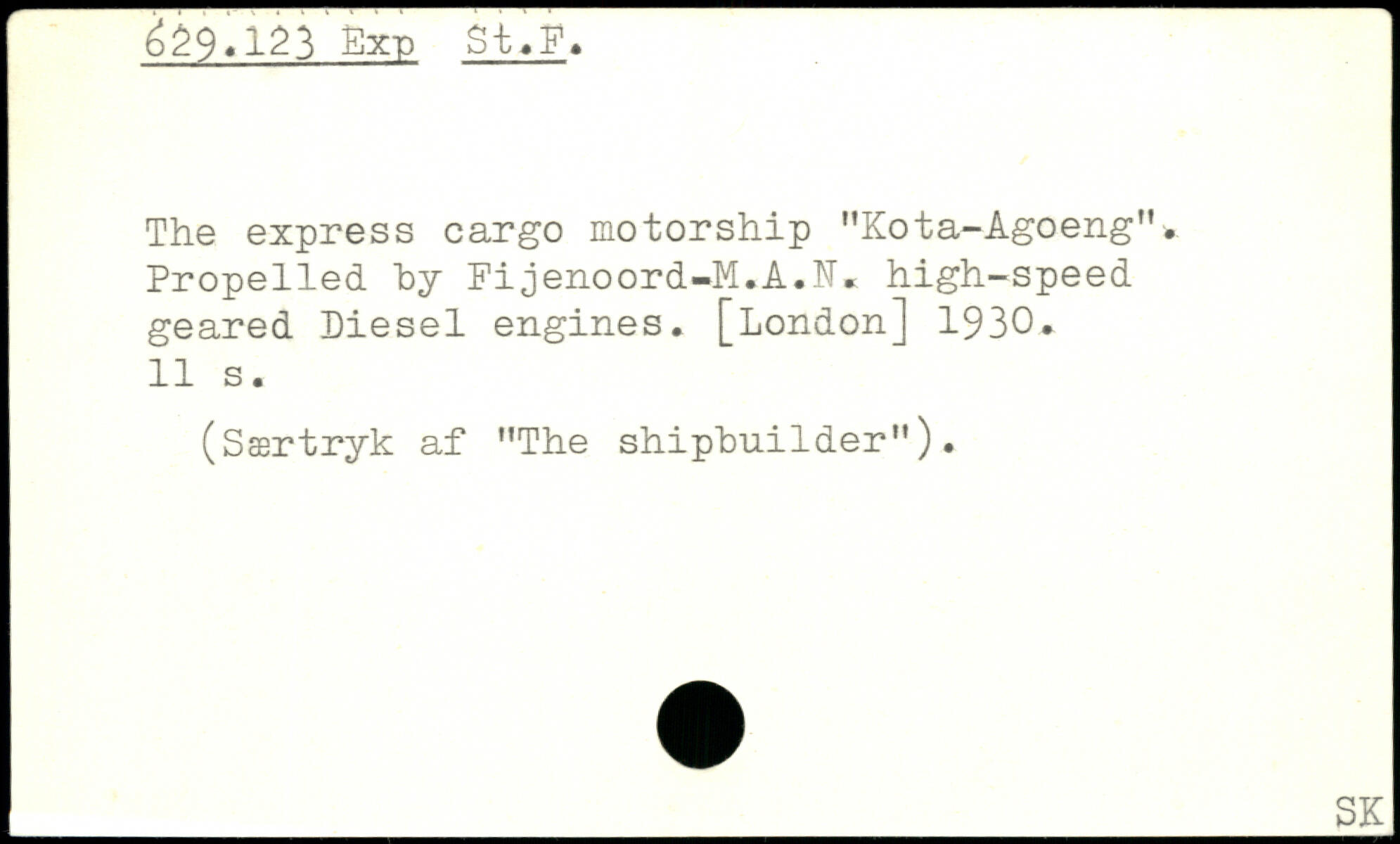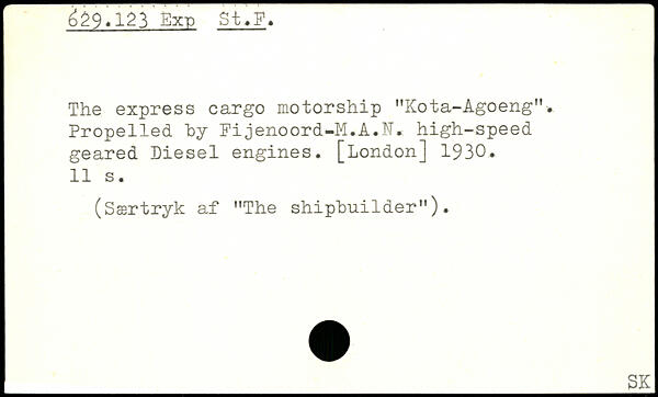 The express cargo motorship "Kota-Agoeng". Propelled by Fijenoord-M.A.N. high-speed geared Diesel engines.