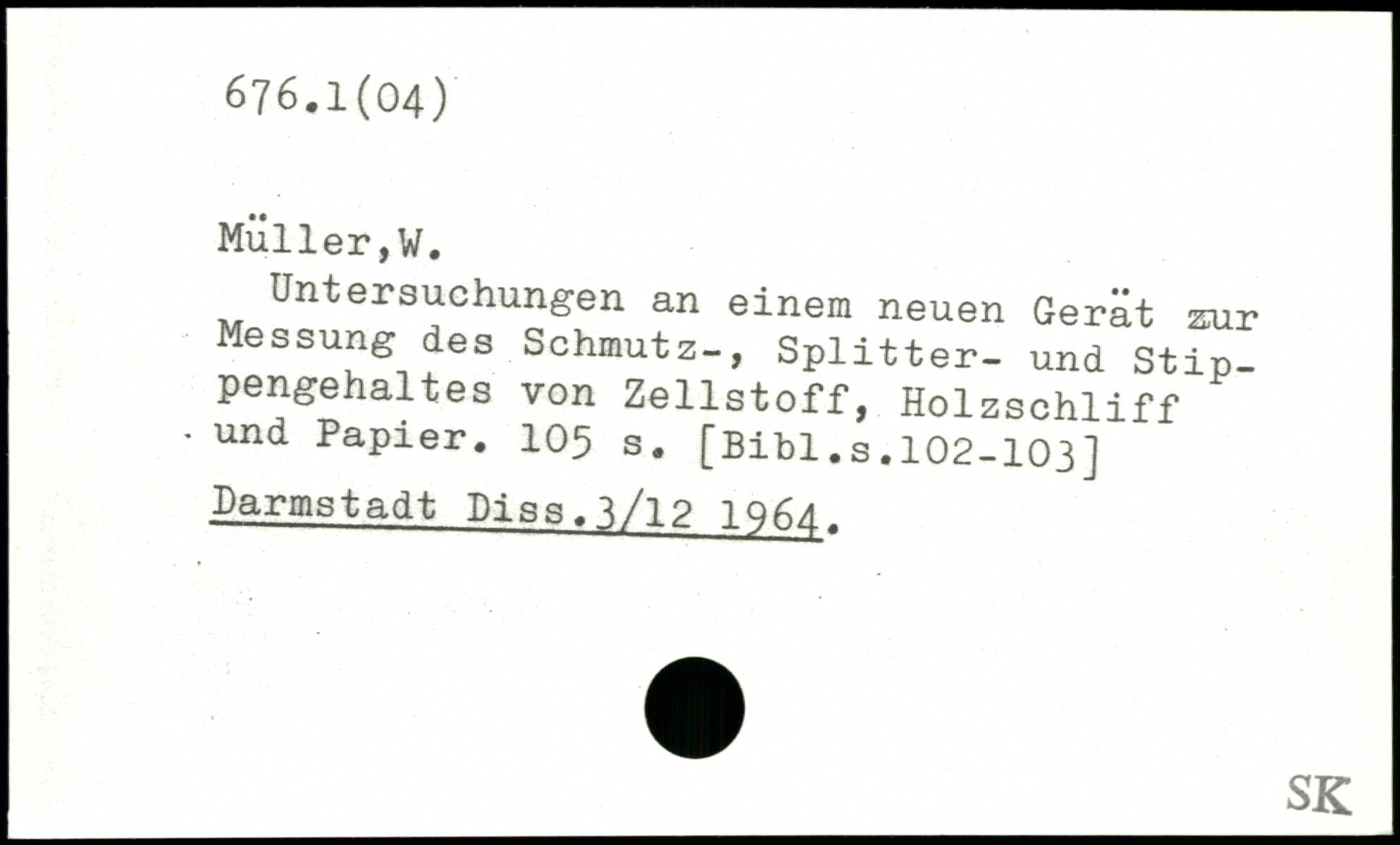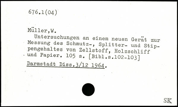 Untersuchungen an einem neuen Gerät zur Messung des Schmutz-, Splitter- und Stippengehaltes von Zellstoff, Holzschliff. und Papier.