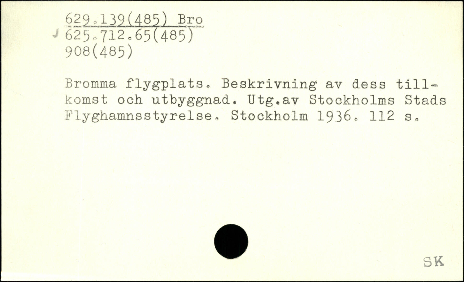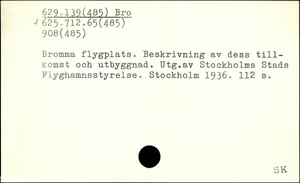 Bromma flygplats, Beskrivning av dess tillkomst och utbyggnad. Utg.av Stockholms Stads FLyghamnsstyrelse