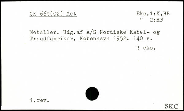 Metaller. Udg.af å/S Nordiske Kabel- og Traadfabriker.