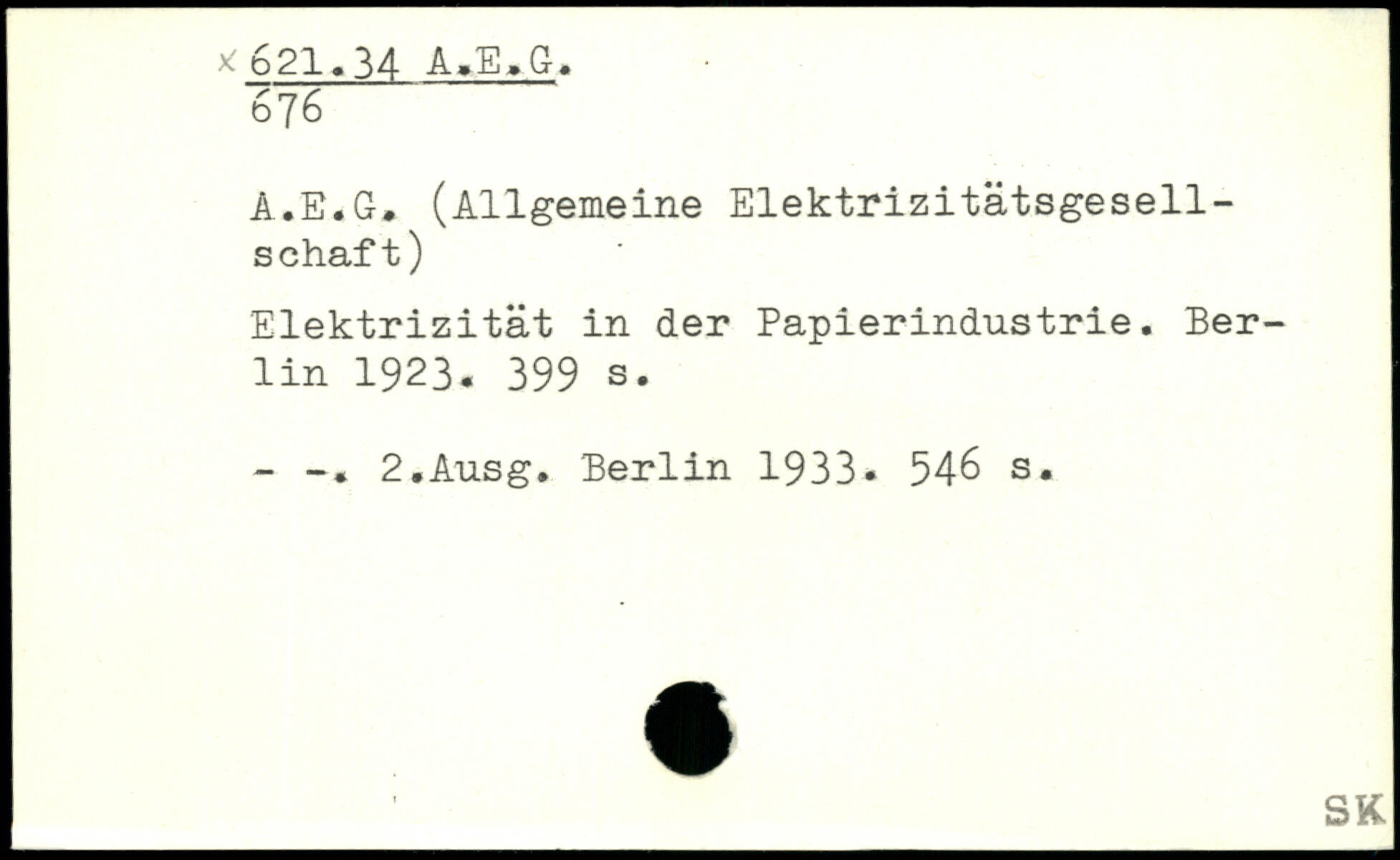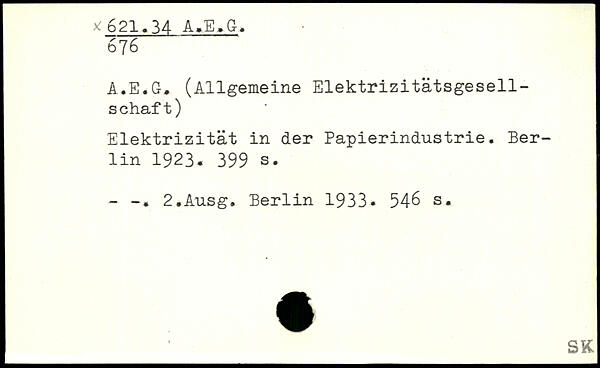 A.E.G, (Allgemeine Elektrizitätsgesell-s chaf t) Elektrizität in der Papierindustrie.